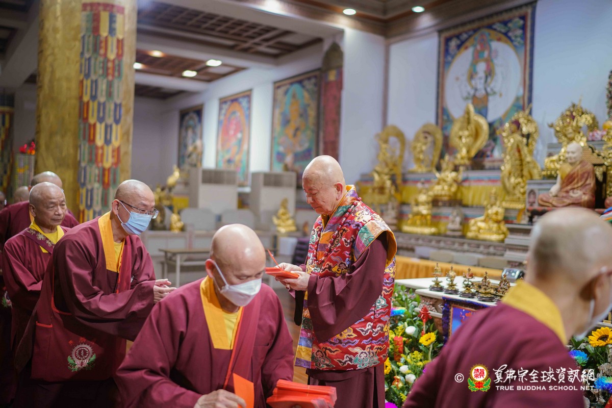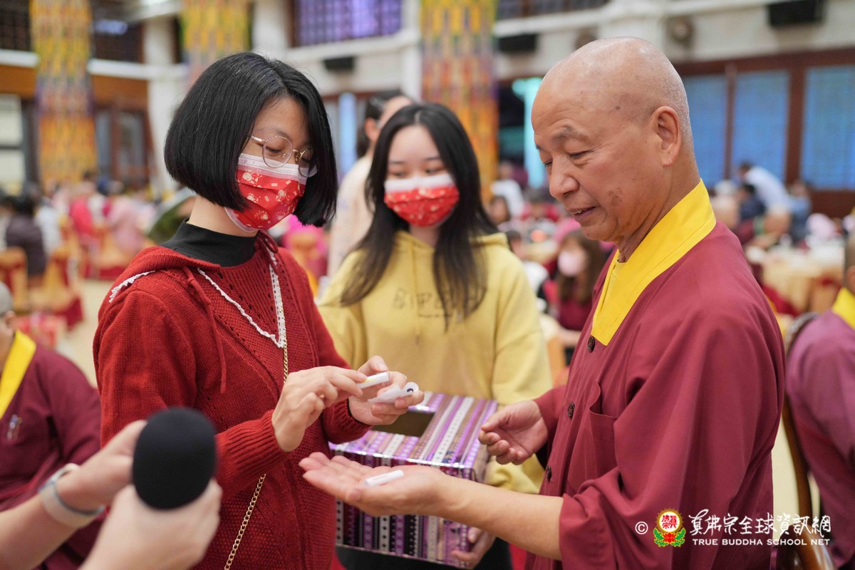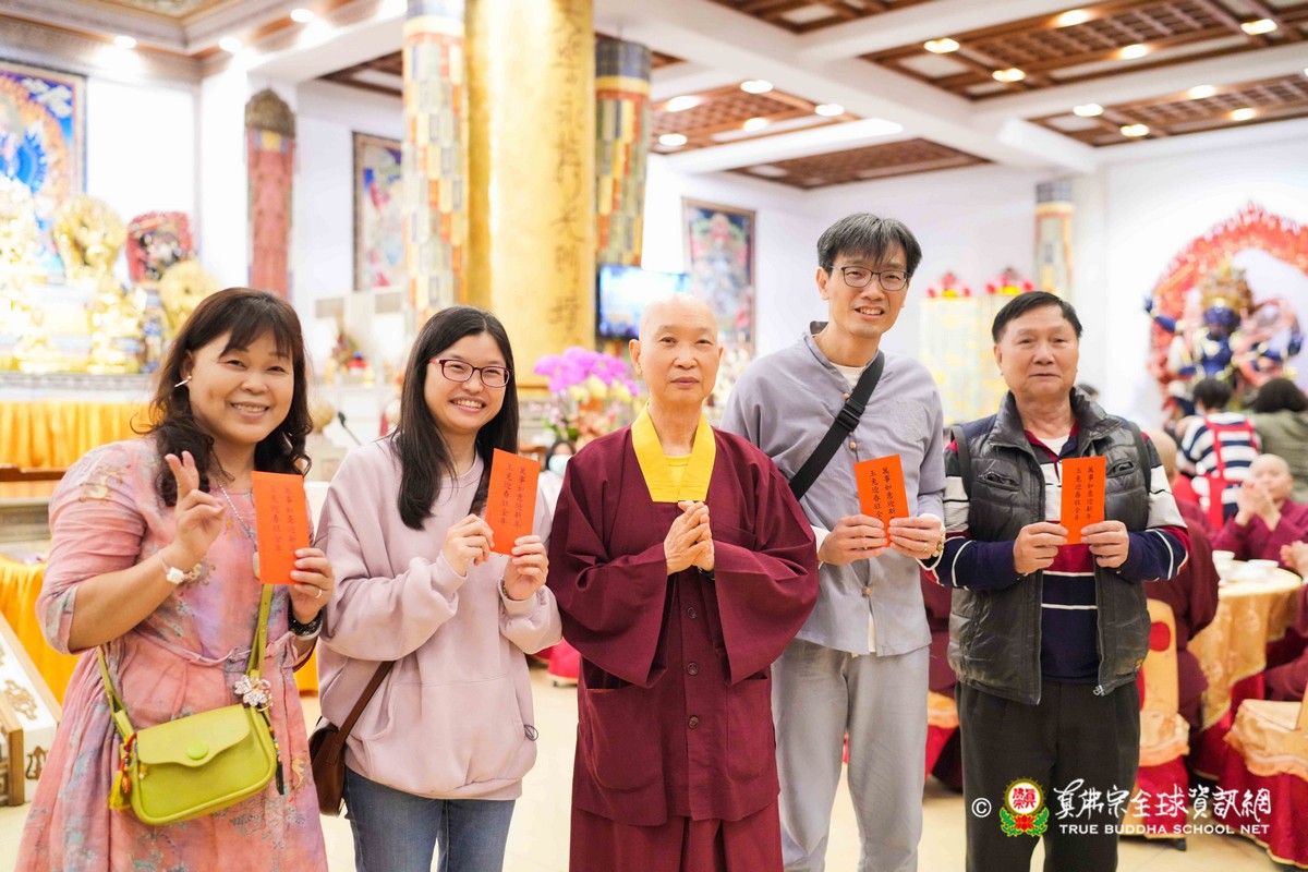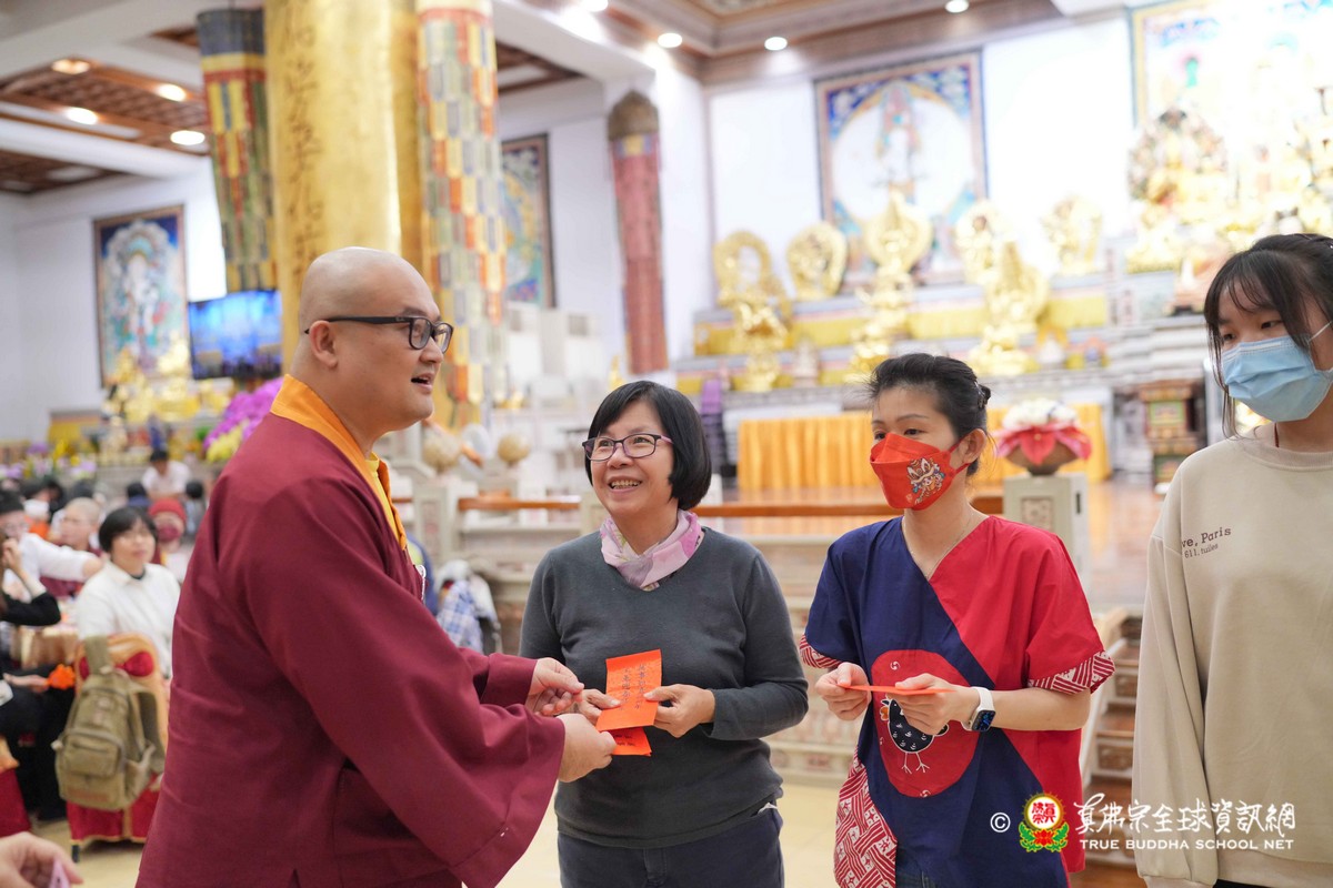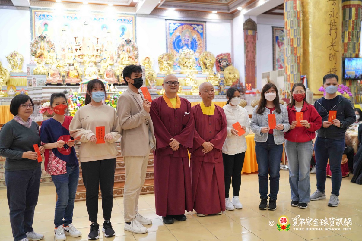 師母很衷心的說出心聲,大家能夠再見到師母,真是喜極而泣!最後師尊一一為大眾賜福紅包,相隔三年的一聚,今年的圍爐分外令人珍惜!