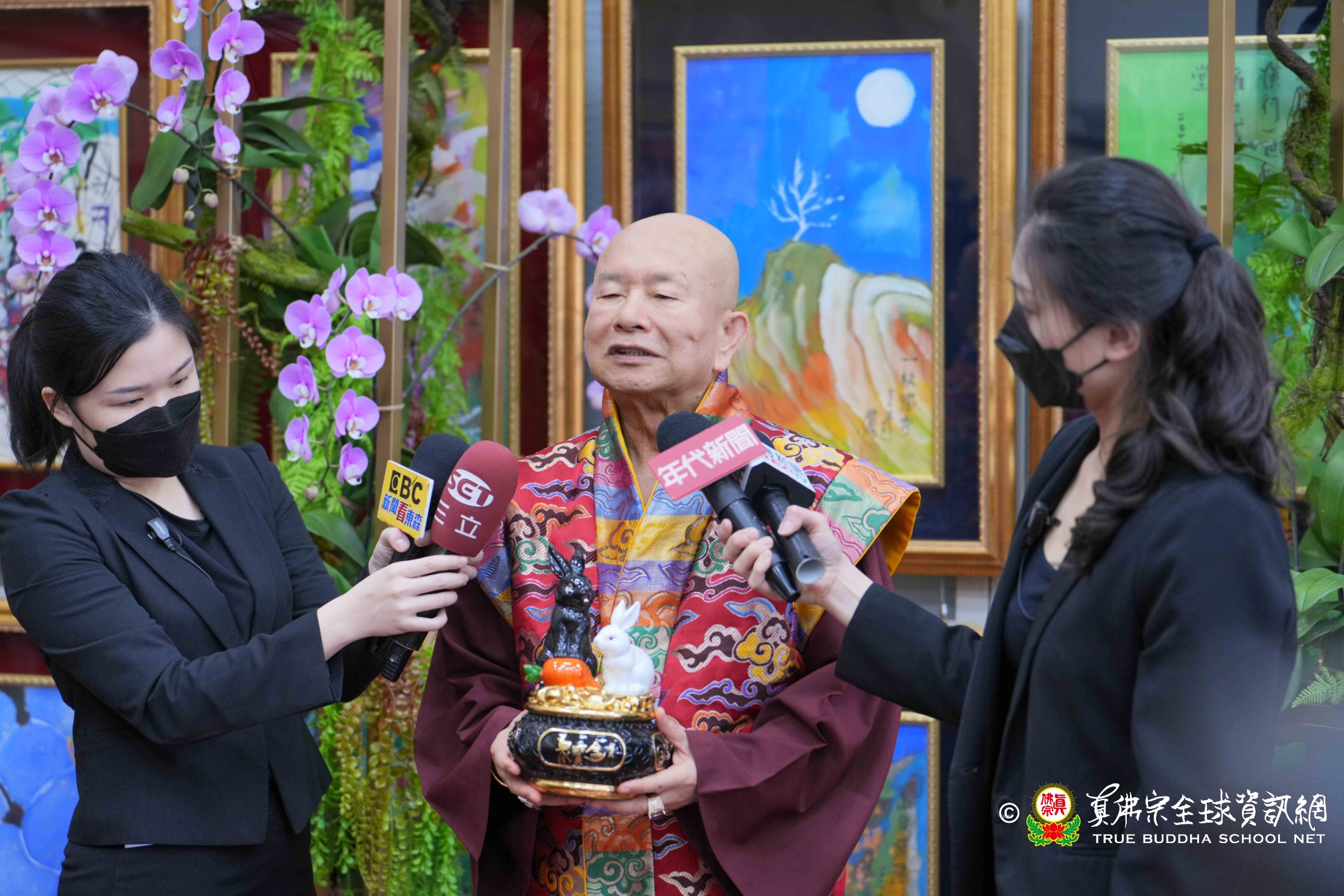 大年初一早晨,信眾們歡聚在台灣雷藏寺,一起參與真佛宗根本傳承上師無上法王聖尊蓮生活佛主持的新春祈福法會,現場熱鬧非凡!法王在現場發送「吉祥如意開運紅包」,同時也作畫、揮毫,與大家「捏兔寶」同樂!