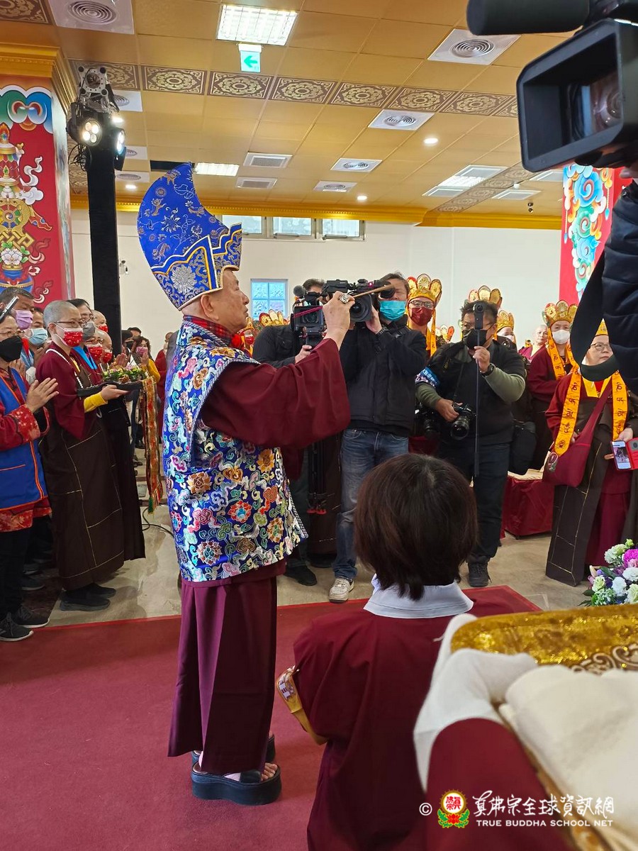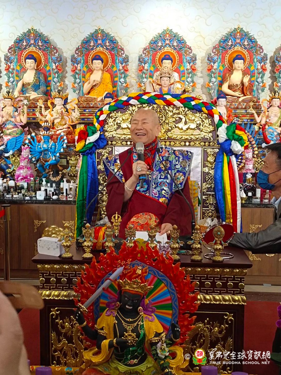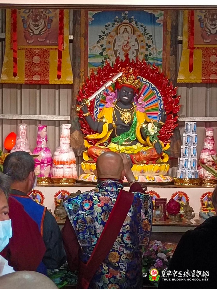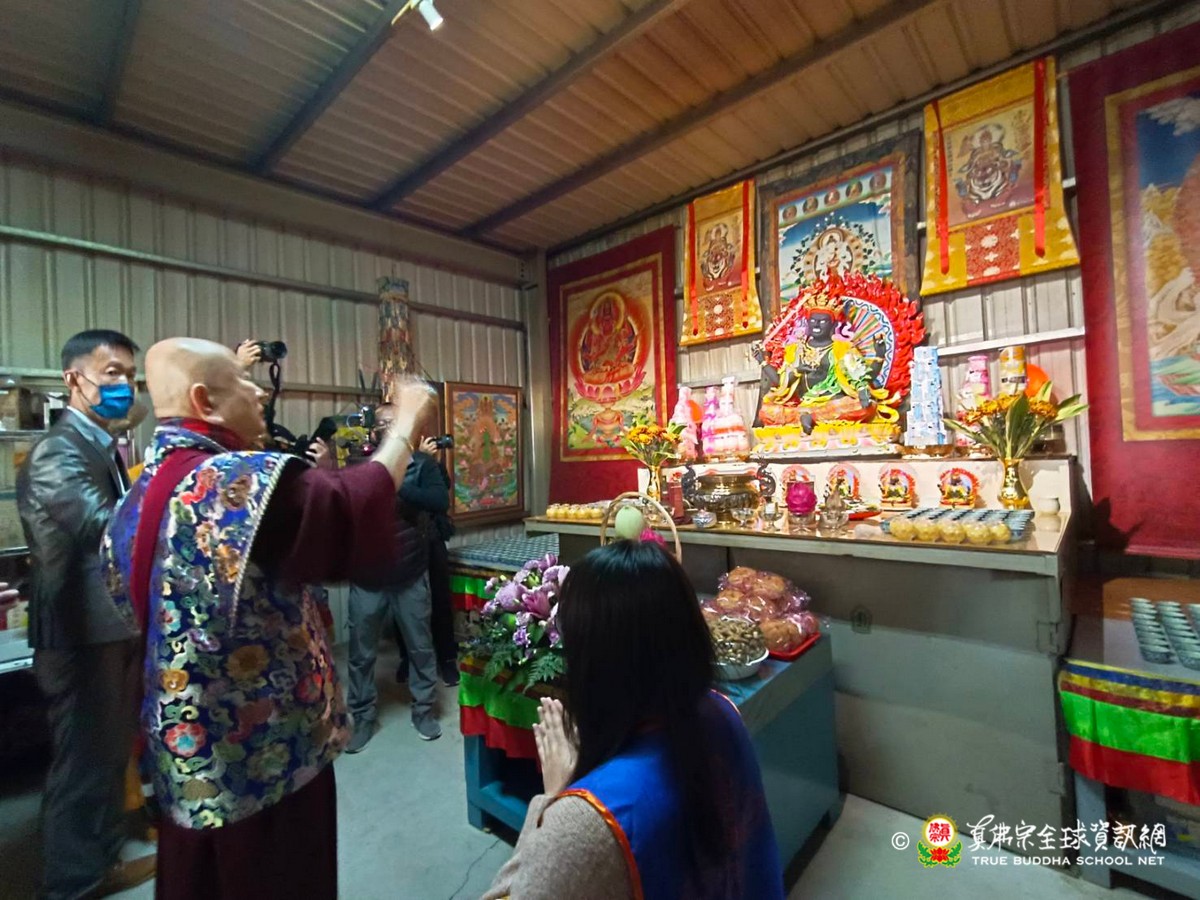 2023年1月29日上午 真佛宗根本傳承上師無上法王聖尊蓮生活佛已抵達大義雷藏寺出席開光剪綵儀式、為獅子石像點睛開光後賜墨寶 大法弘傳於南台 義理周遍存達空 在賜墨寶及試音後,法王繼續巡視大義雷藏寺,加持能摧壞度母點燈區、能摧壞大法會之延生位及往生位。 隨後法王為大義雷藏寺 佛像開光、上香、及主壇【能摧壞度母息災祈福增益敬愛除障超度大法會】