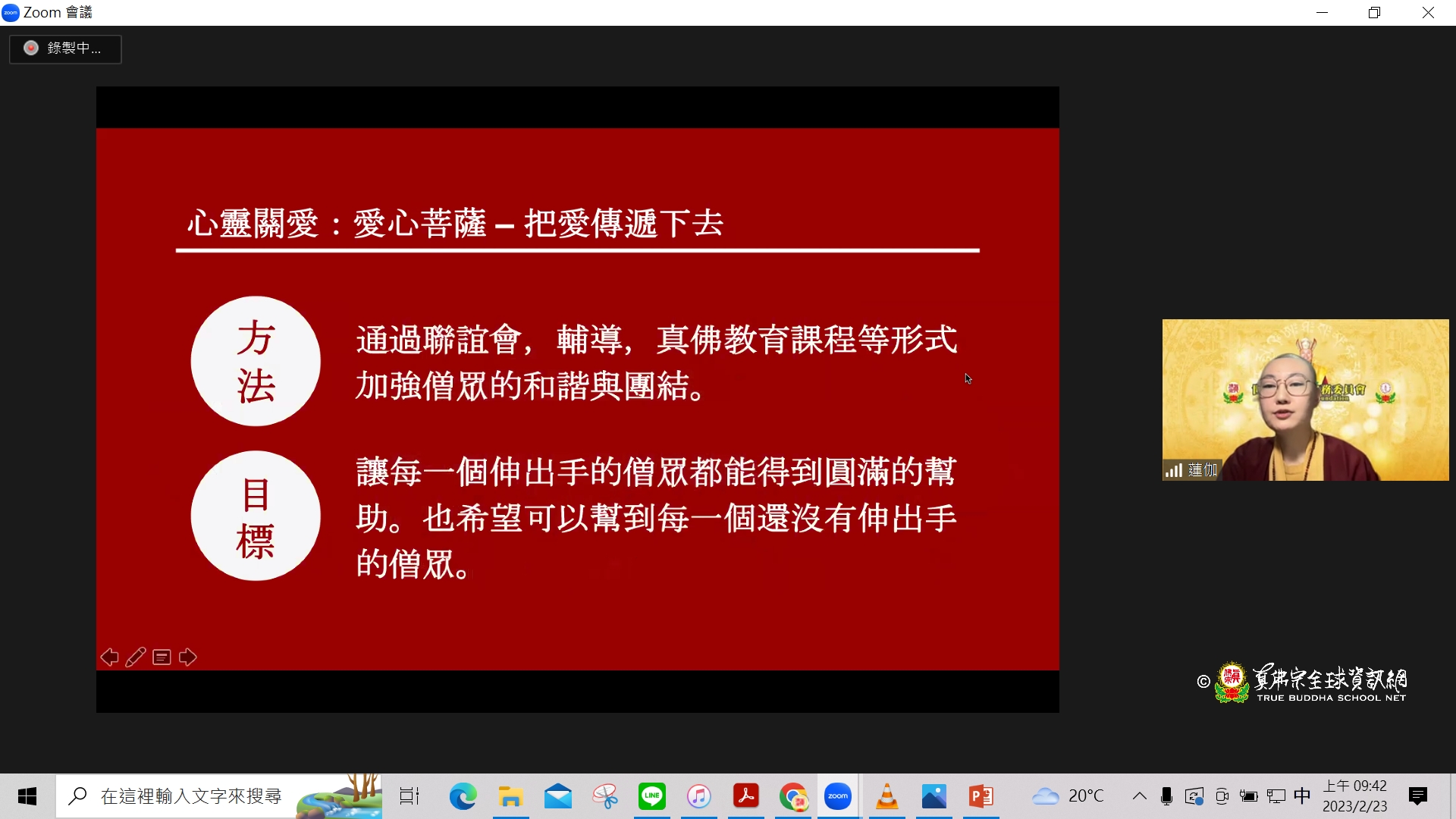 還有「心靈關懷」方面,有心靈提升教育課程,委員及五位上師組成的愛心菩薩,把愛與關懷傳遞下去,通過聯誼、輔導、教育課程等形式,加強僧眾及弘法人員的和諧與團結。