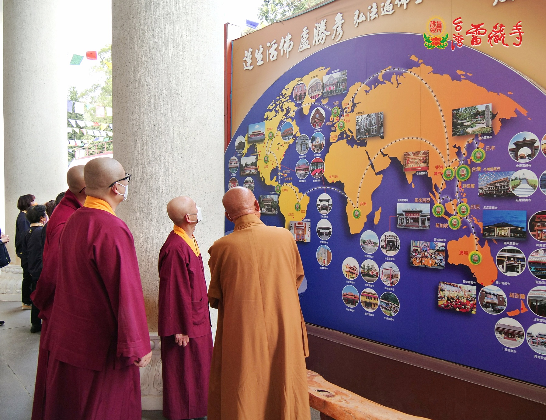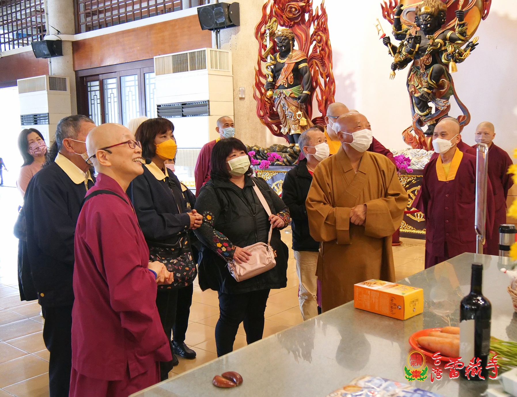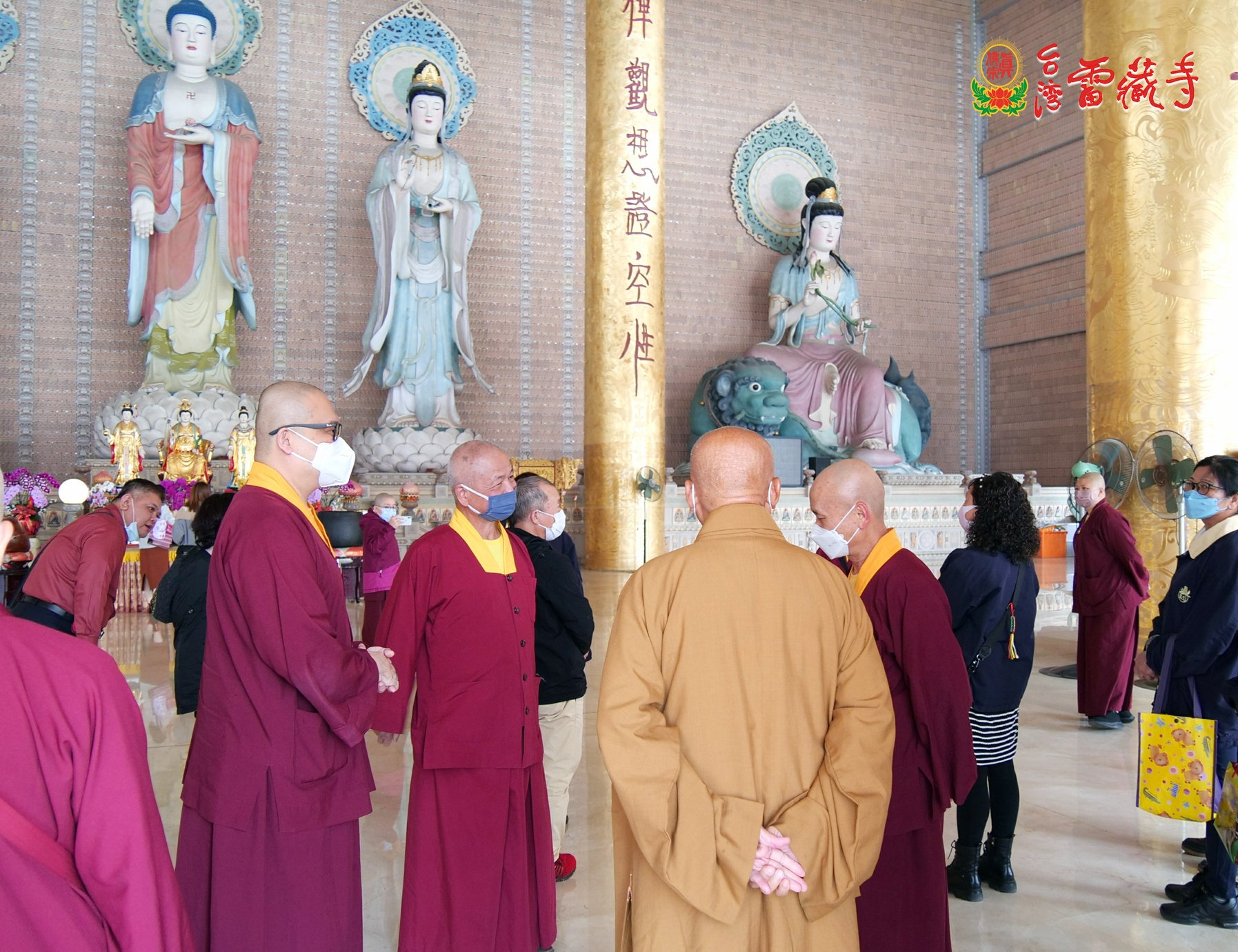 台灣雷藏寺四大執事,住持釋蓮哲上師、副住持釋蓮栽上師、監院釋蓮歐上師、密教總會理事長釋蓮東上師,以及密總常務理事寶悅同修會釋蓮余上師,與台灣雷藏寺中眾法師、同門共約十五人許,一同熱情地歡迎佛光山代表團的到來。