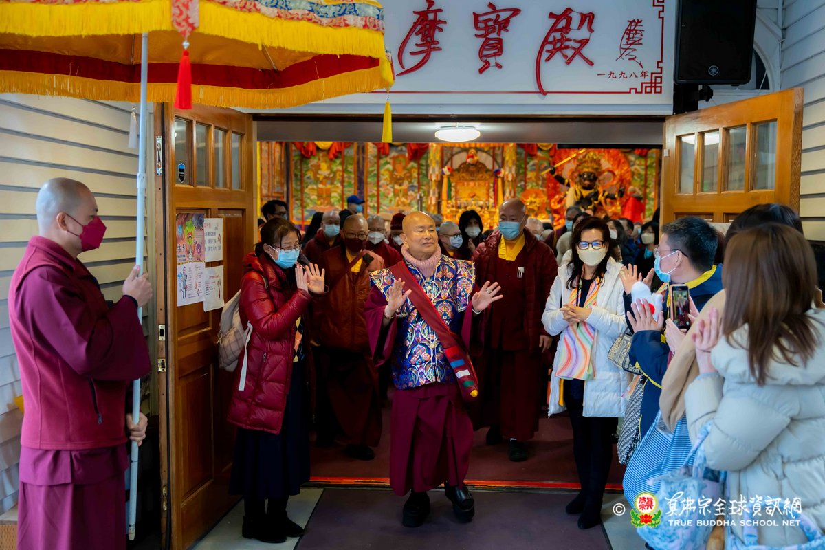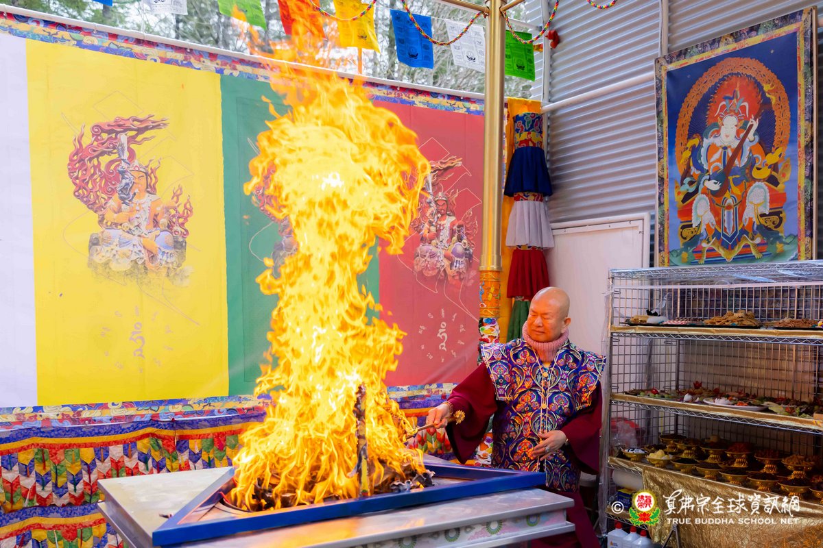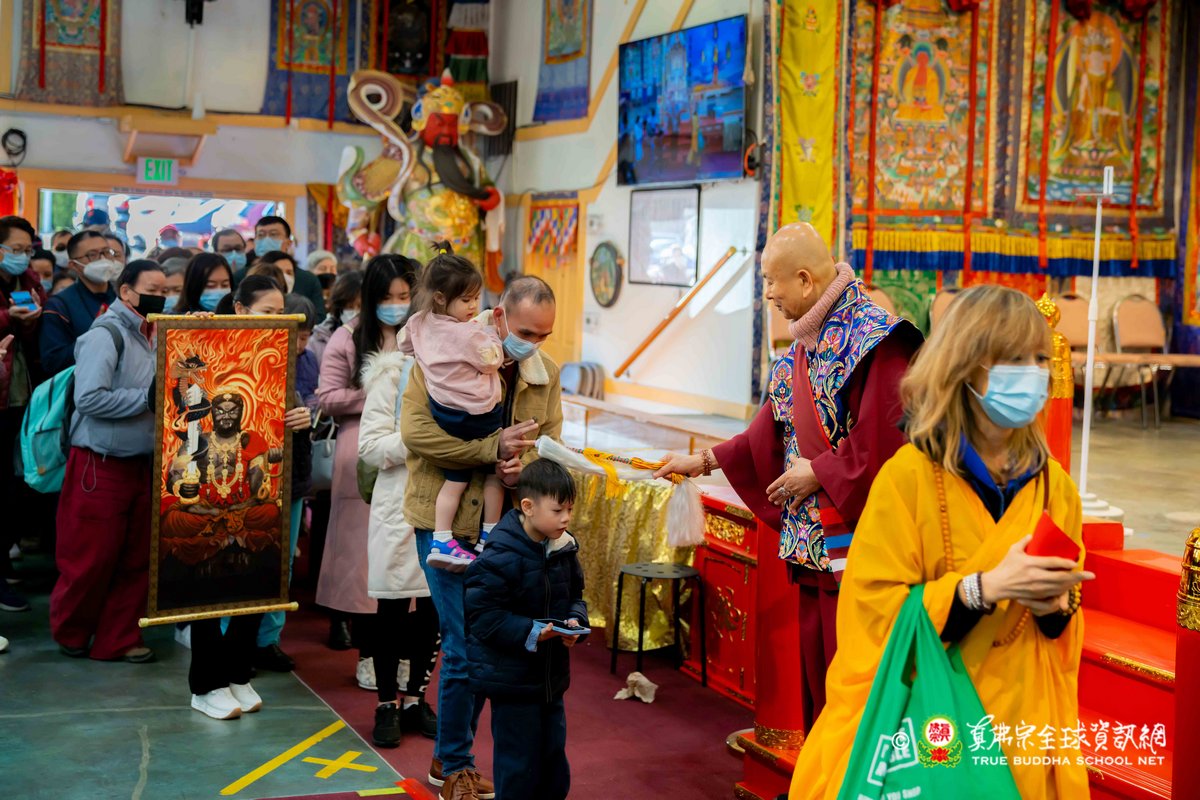 2023年3月26日,西雅圖彩虹雷藏寺恭請蓮生法王主壇殊勝的五色不動明王護摩法會。護摩結束後,法王預告4月2日下午3點是清明節地藏王菩薩護摩法會。法王講述地藏王菩薩右手持錫杖,左手捧摩尼寶珠,座騎為諦聽。地藏王菩薩也是法王的本尊,向大家示範其手印及咒音後,法王表示地藏王菩薩是八大菩薩中唯一顯聲聞相的菩薩,也就是出家相。