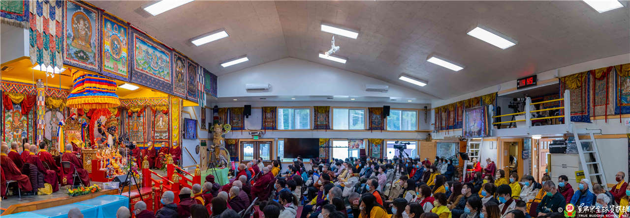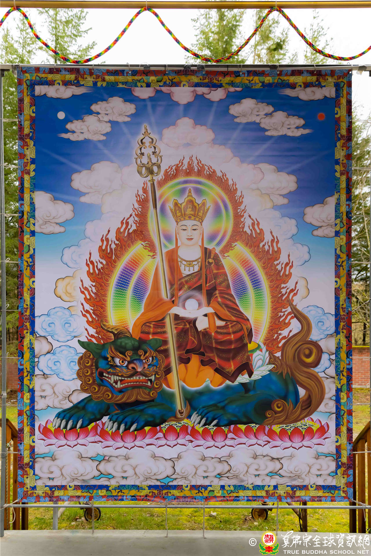 2023年4月2日,西雅圖彩虹雷藏寺恭請聖尊蓮生法王,主持南摩紅地藏王菩薩護摩法會。法王首先向大家預告,下週是尊勝佛母護摩法會。尊勝佛母的法力相當於準提佛母,無論是印度、西藏、中國,都屬於大佛母,且千變萬化。尊勝佛母有一字咒:「嗡。普隆」,力量很大。圓滿咒「嗡。部林」是普方上師所傳,其實也就是「嗡。普隆」,二者是同樣的,是圓滿之意。