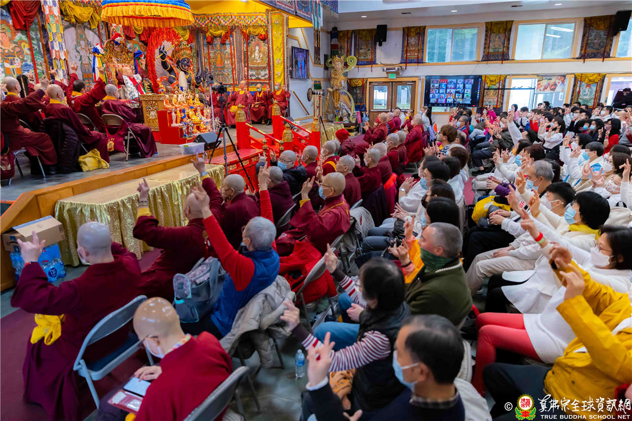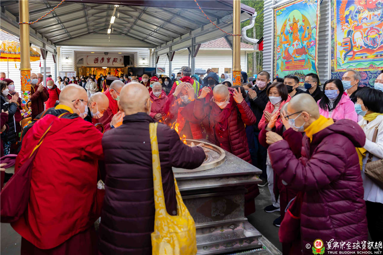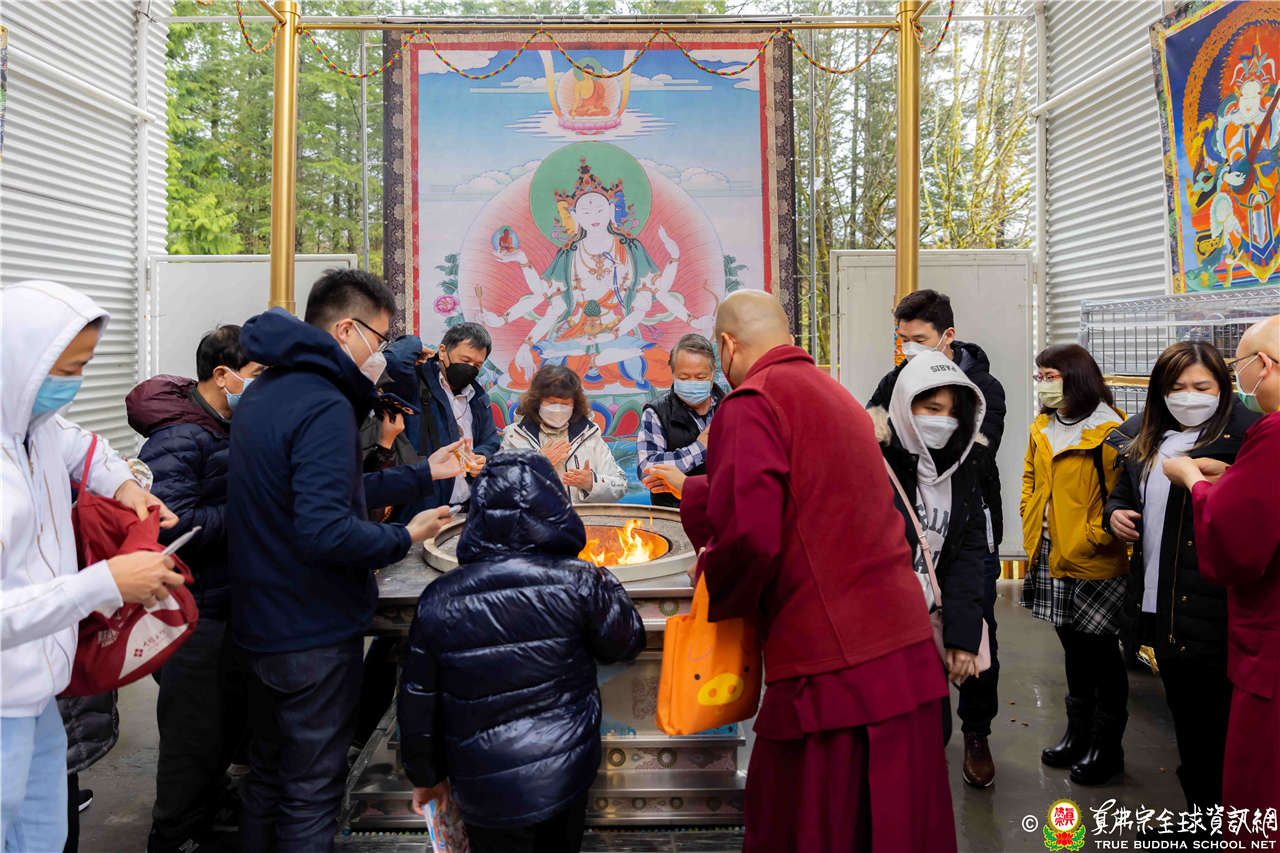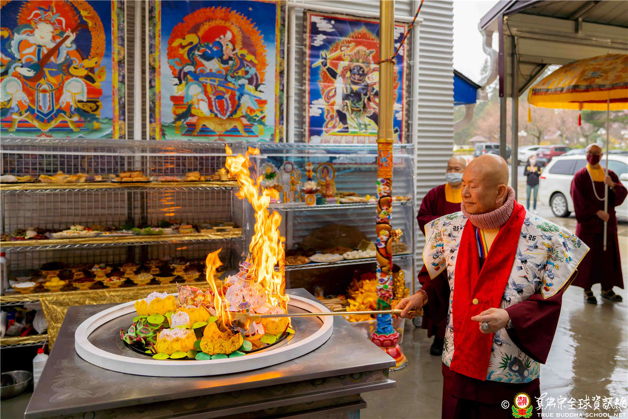 在護摩迴向時,司儀宣佈世界真佛宗宗務委員於4月7日至4月8日率全球道場暨弘法人員在雲端共同持誦尊勝佛母心咒,祈望「尊勝佛母」加持守護迴向根本上師聖尊蓮生活佛除病消災、請佛長壽住世,以無量威德的法力饒益眾生。法王感動表示今日「尊勝佛母」下降力量非常大。