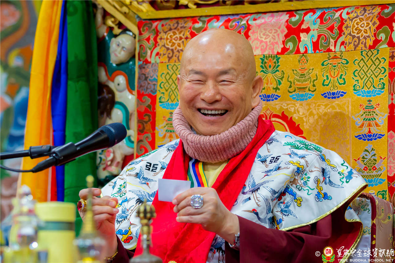 法會結束前,法王開心宣布9月9日秋季大法會將傳授「聖觀音第一富豪法」,弟子們如乘願轉世,將生生世世成為富豪利益眾生。接著法王給予現場弟子「尊勝佛母法」灌頂,並與zoom上弟子們打招呼,弟子們誠摯地感恩法王開示,法會圓滿結束。