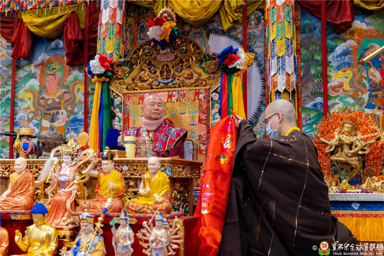 法會結束前,線上弟子們不斷恭祝法王佛體安康,請佛住世,法王也回予加持祝福,並賜予現場弟子「愛染明王法」灌頂,弟子們誠摯地感恩法王開示,法會圓滿結束。