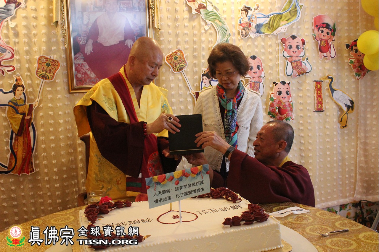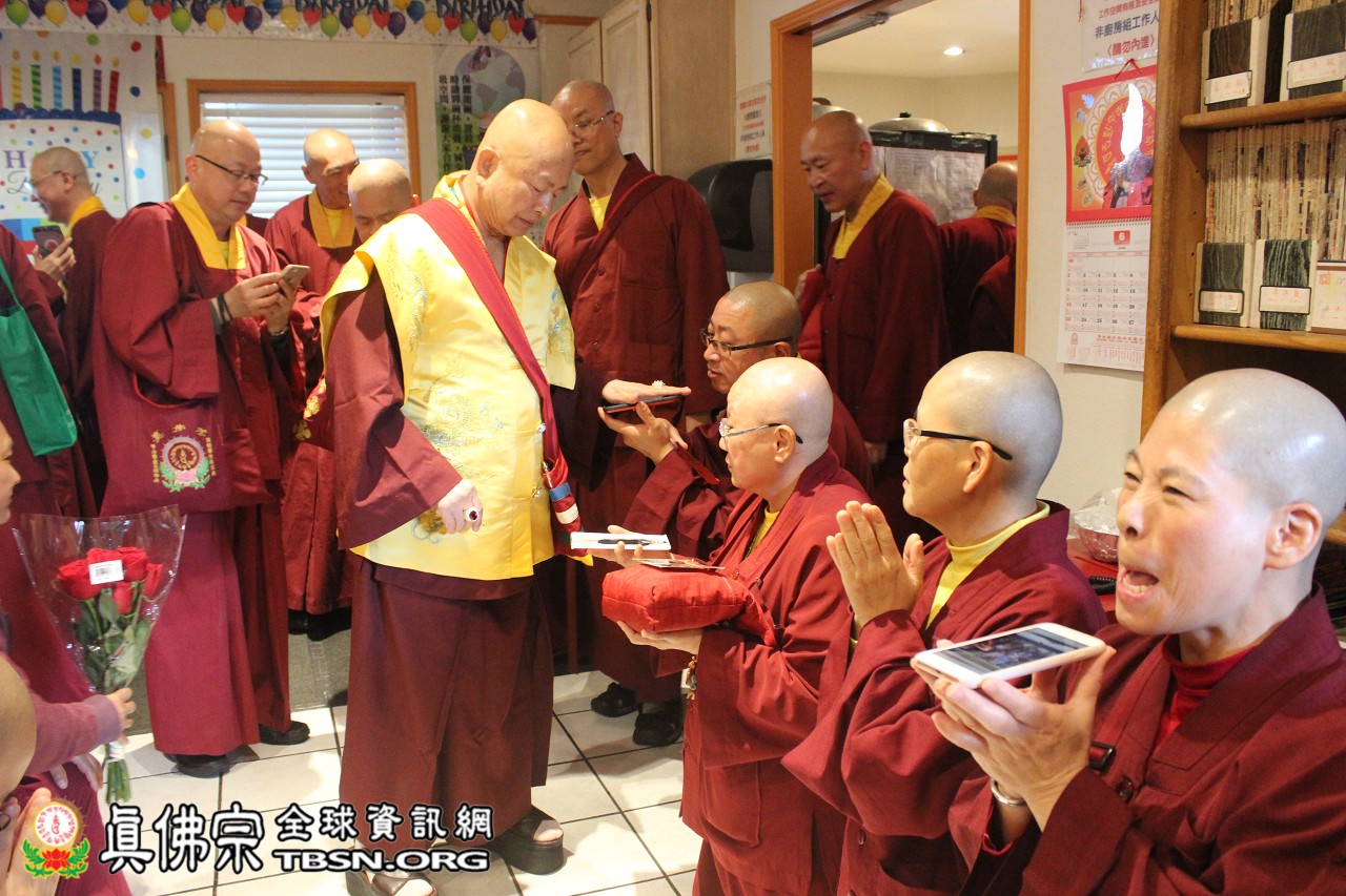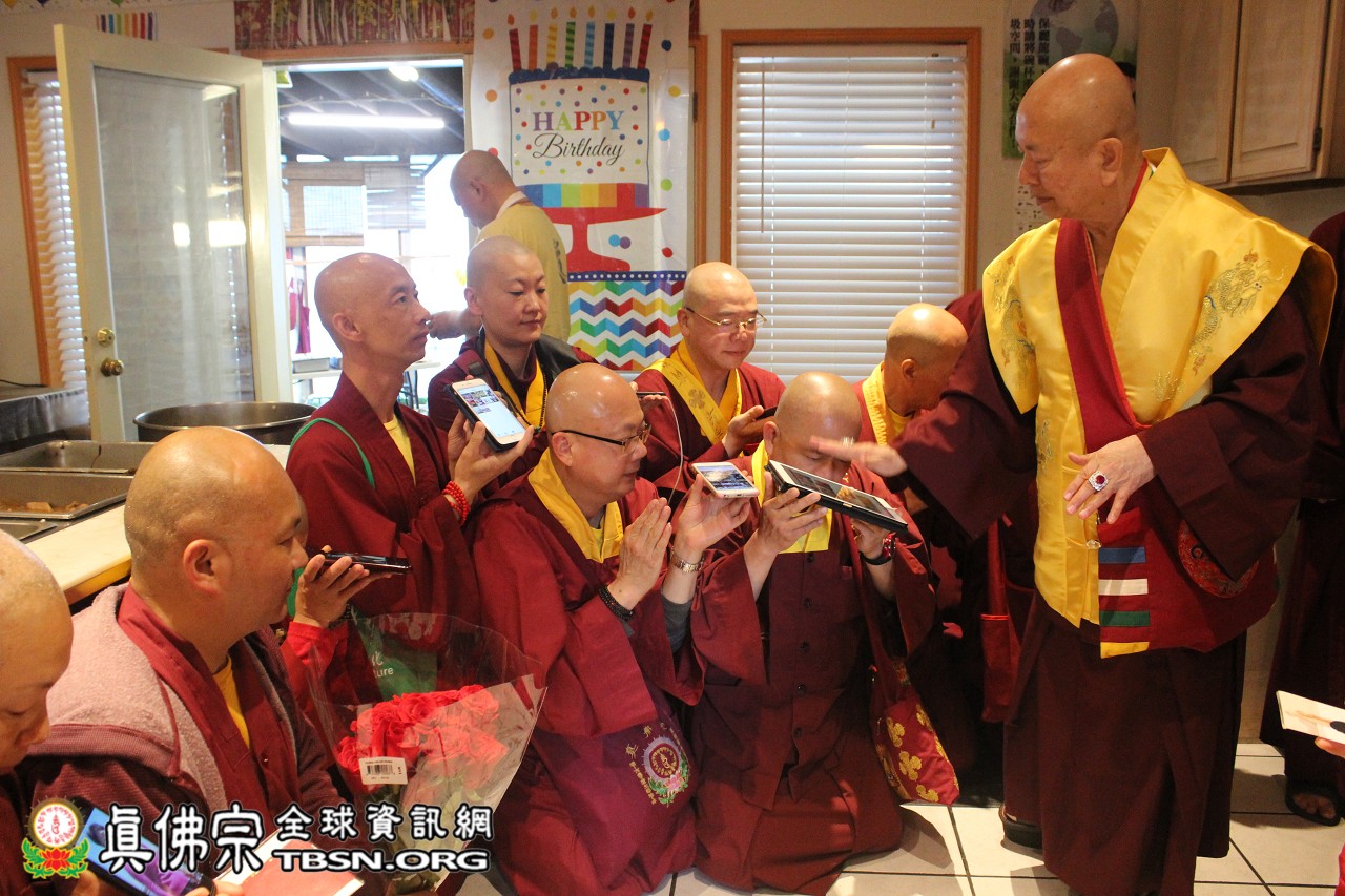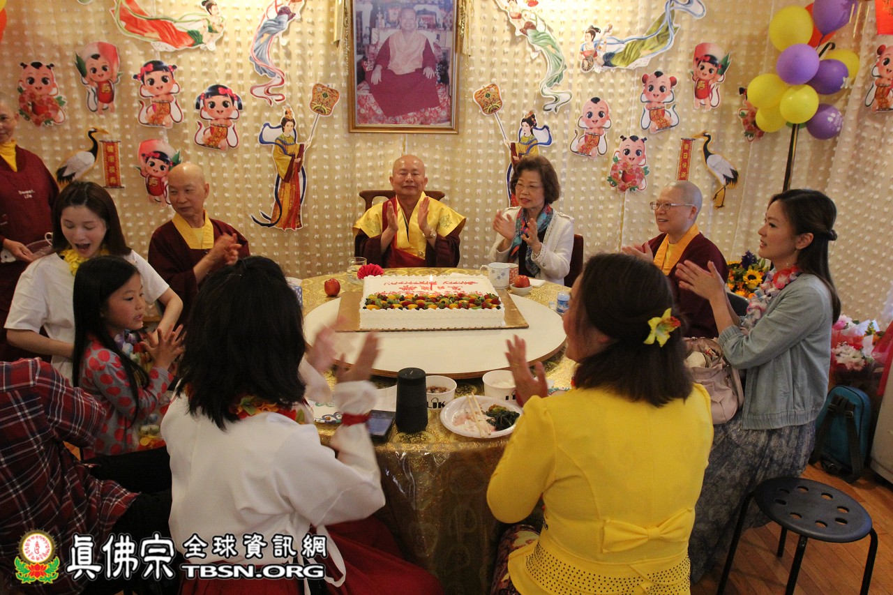 此次聖尊的壽誕,宗委會的會長及各大處長一同來到西雅圖與大家一同慶祝。中午,宗委會特地準備了非常精緻的大蛋糕,當生日快樂歌響起,歡聲雷動的掌聲、祝賀聲不斷,大家對根本上師都獻上滿滿的祝福。在這普天同慶的一刻,聖尊也為【真佛宗全球資訊網】新版做點擊開站,開啟另一個真佛網路時代!中午散會後,許多同門在聖尊佛誕的這一天,相約到雷藏寺奉誦真佛經,隨心所求,自有感應。