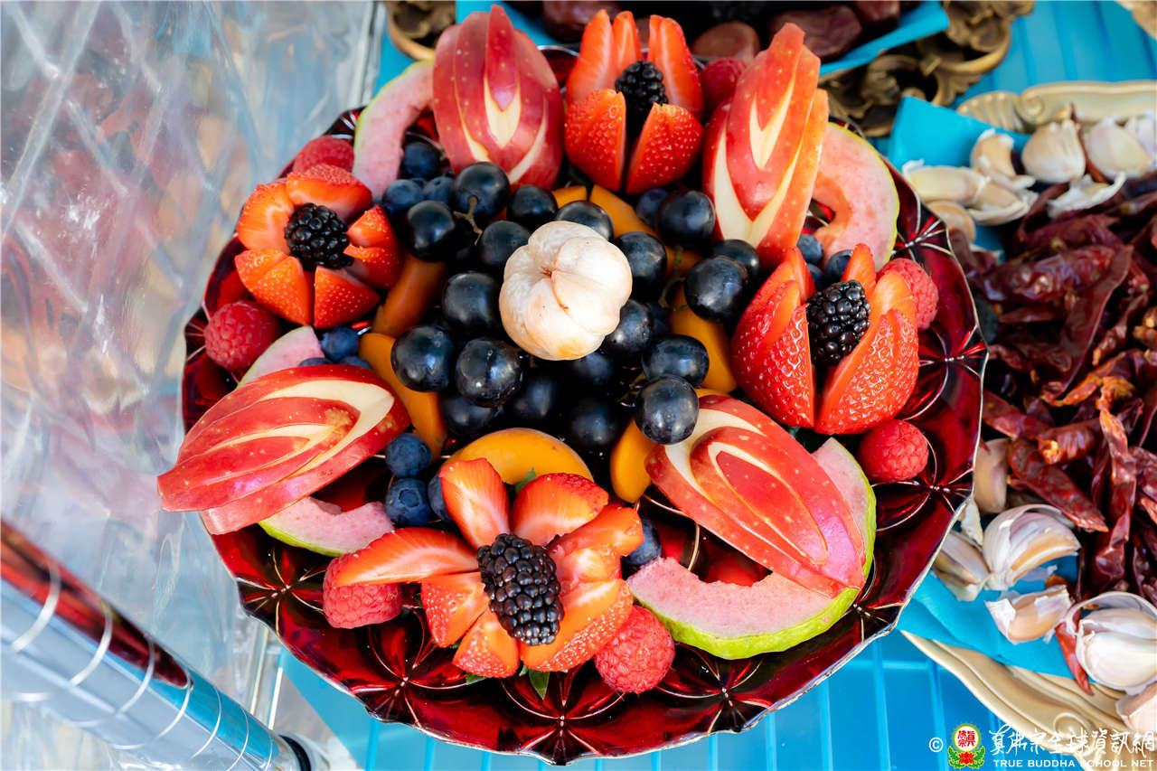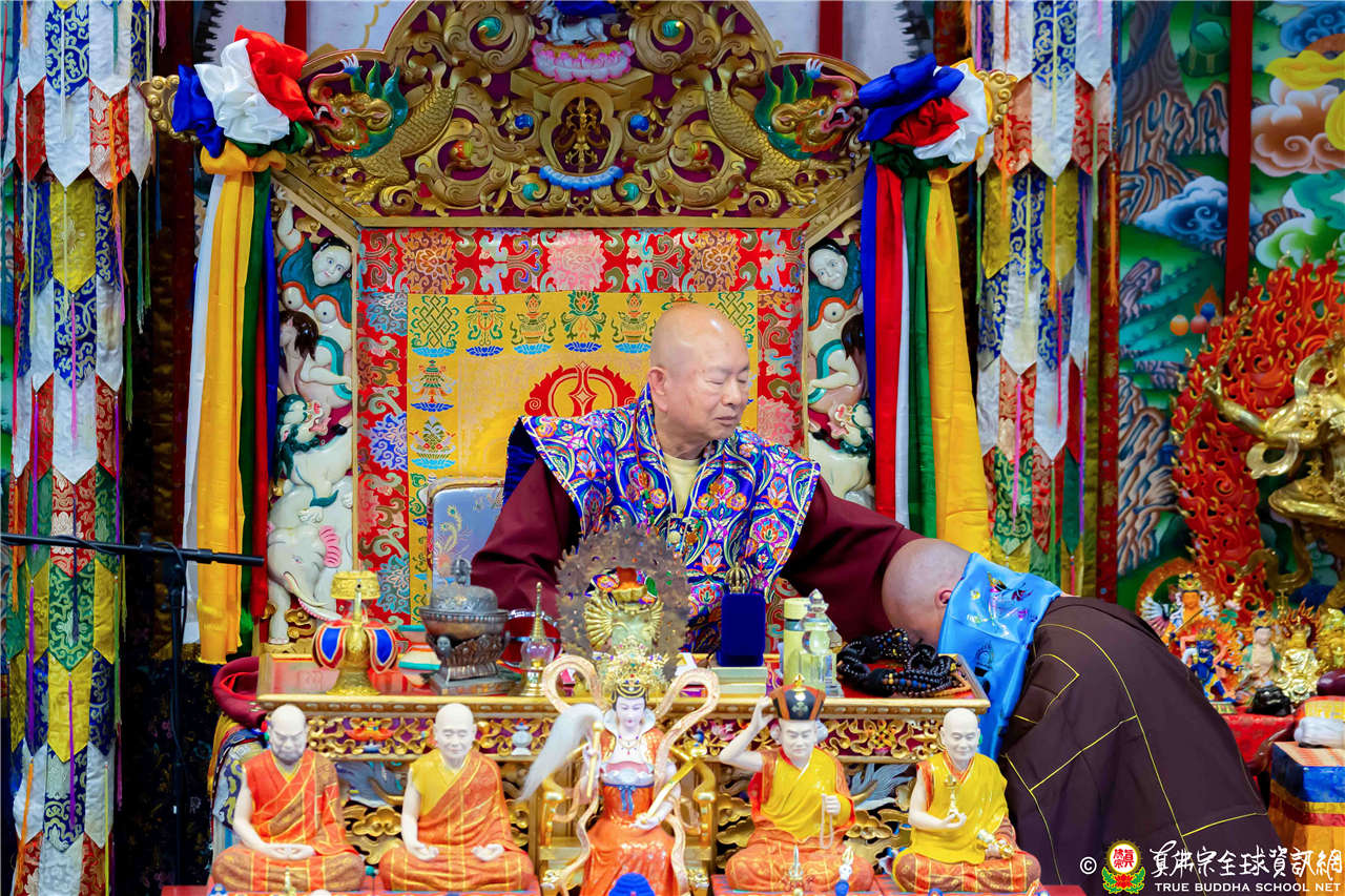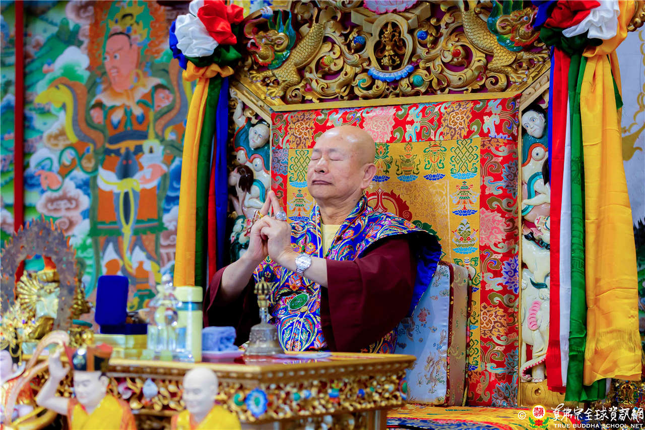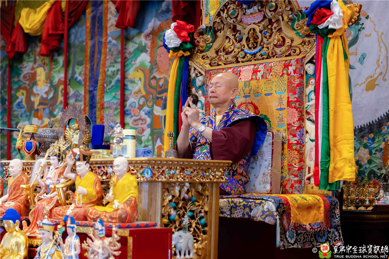 法王開示今日護摩主尊大威德金剛非常重要,是宗喀巴大師的護法,也是法王的護法。彩虹雷藏寺金剛明王殿中央的一尊也是大威德金剛。祂的威力無窮,可降服諸魔,亦稱降閻魔尊。祂是阿彌陀佛、文殊師利菩薩、閻魔法王三身合一的大威德金剛,可降服死魔、煩惱魔、天子魔、病魔、五蘊魔。只要祂一出現,任何鬼怪皆無法抵擋,是怖畏金剛。大威德金剛在護法中威力最大,法王首次相應時在真佛密苑,祂出現時,四大海水全部翻滾。