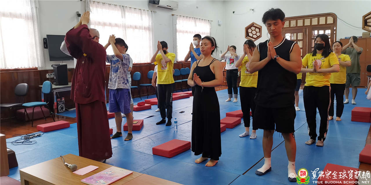 課程設計動靜結合,有運動、遊戲,還有佛學知識、禪定練習。蓮訶上師親自指導大家禪定的姿勢,帶領大家7分鐘的數息練習。只見在場每一位真青都很認真的去感受和調整自己的呼吸,練習專注力,順利完成了人生第一次的禪定體驗。