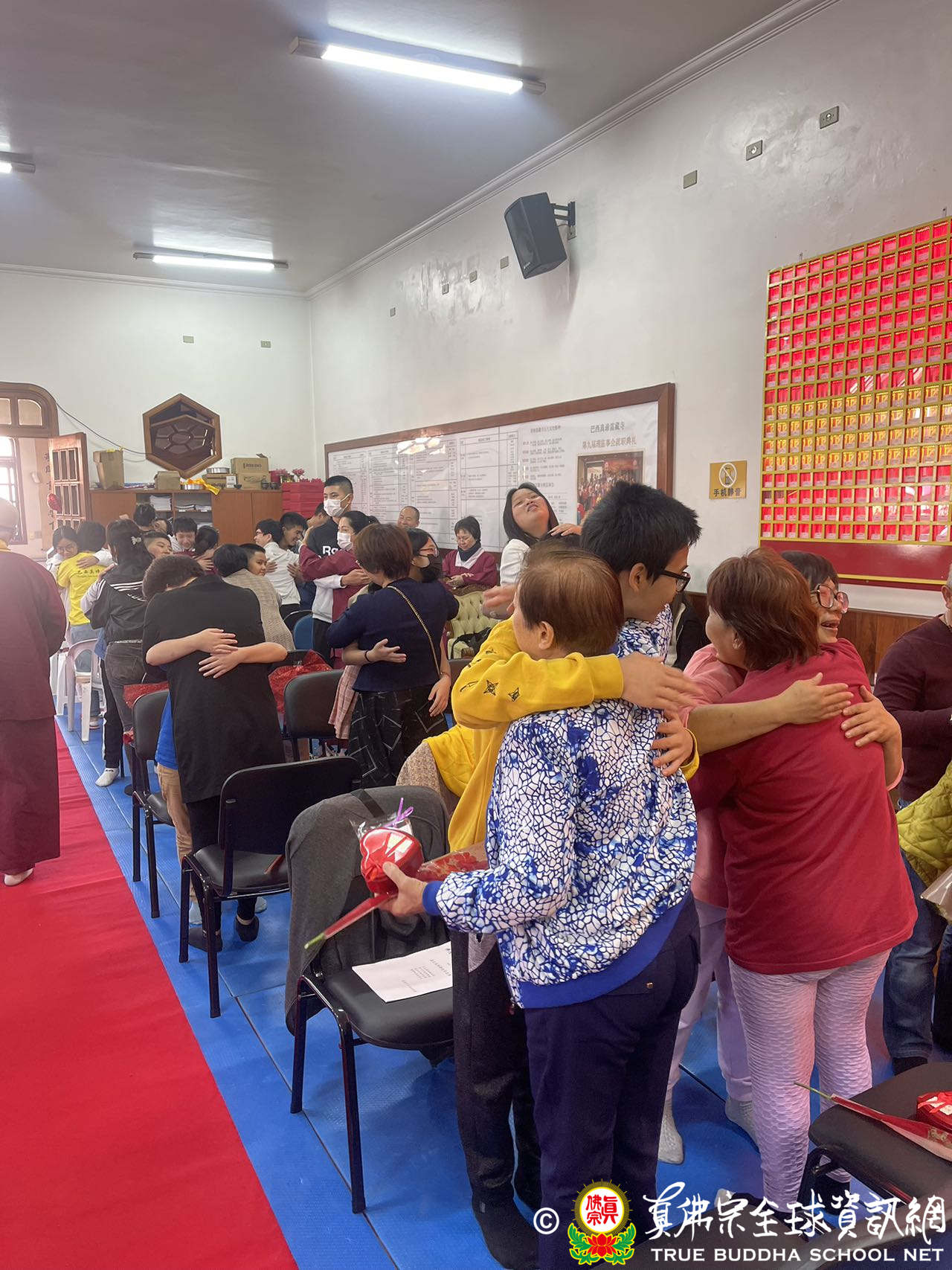 首先是座位安排,每一位母親和孩子面對面坐著。然後蓮訶上師帶領每一位孩子上香,為自己的母親祈福,孩子們很虔誠的一起念:「請加持我眼前的母親身體健康,平安快樂!」很多母親看著孩子們虔誠的表情,都露出了欣慰的笑容,甚至已經感動到流淚了。