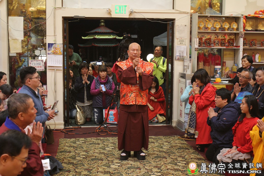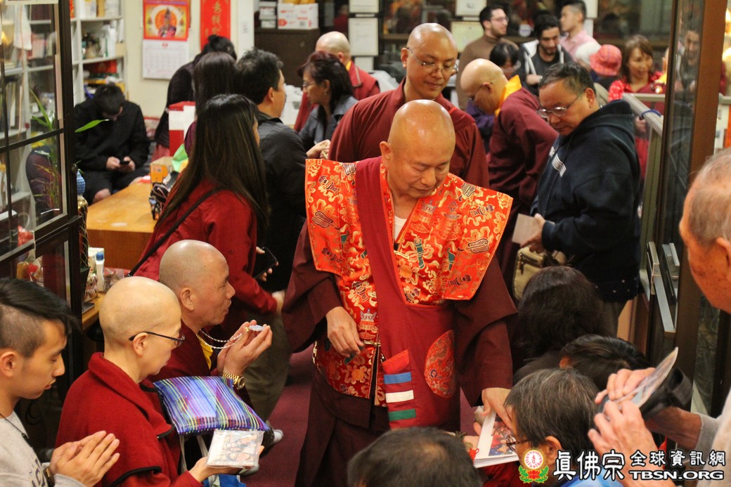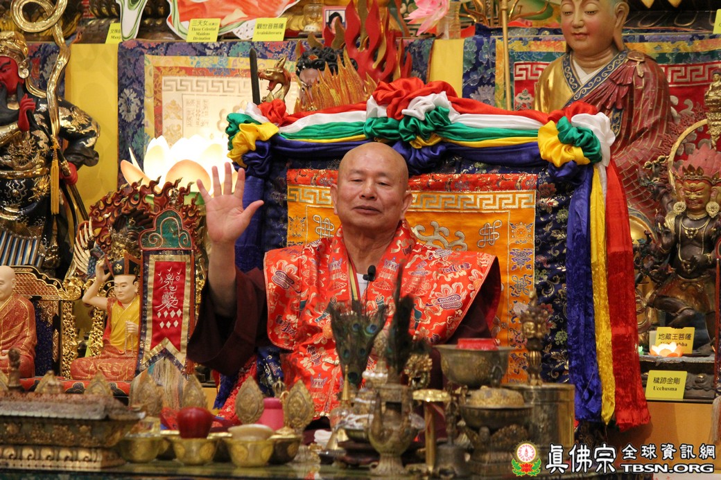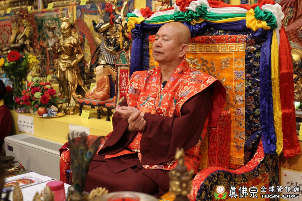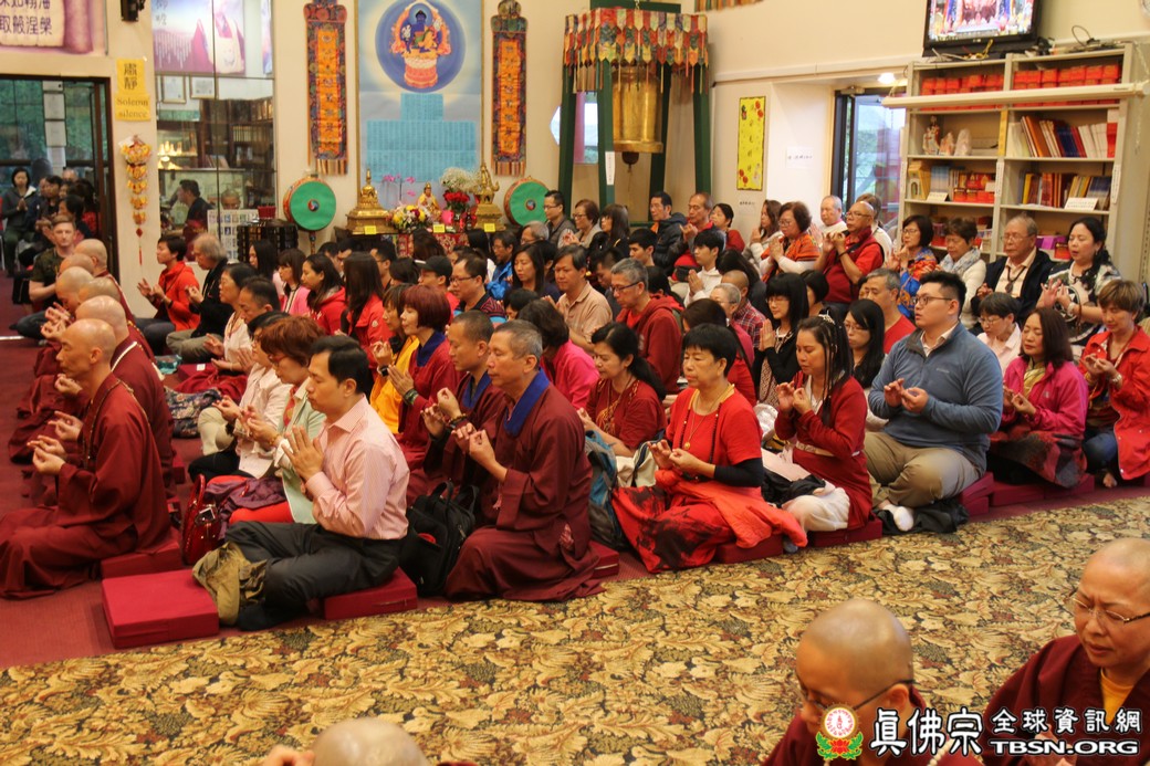 精闢的道果開示結束後,雷藏寺唱誦組帶領大眾唱誦阿彌陀佛聖號。聖尊為新皈依弟子做皈依灌頂,並加持大悲咒水、佛像開光。臨行前,聖尊慈悲為與會大眾摩頂加持。迎師隊伍莊嚴整齊的恭送聖尊回到密苑,全體向根本上師虔誠頂禮,感恩根本上師的珍貴法語開示。