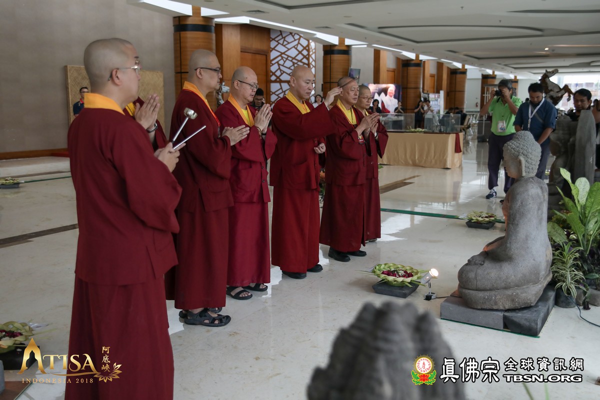 「千年尋根 請佛住世:行菩提」活動,2018年10月28日,上午於印尼日惹The Alana飯店會議廳,繼續舉行第二天的「歷史與學術交流座談會」。由蓮飛上師帶領吟誦做為開場,邀請宗委會上師,包括高程祖上師、蓮悅上師、蓮訶上師、蓮僧上師、蓮太上師、蓮東上師等為會場外所展出的多尊千年古蹟佛像,進行開光儀式,這些佛像是七世紀從中爪哇出土的文化遺產,是非常不思議的佛像。會中並做祈福儀式,祈請根本上師佛光注照、諸佛菩薩放光加持,是日活動及護摩法會一切吉祥,也祈願蘇拉威西罹難的亡者蒙佛光加持,離苦得樂,往生淨土;倖存者也能盡速重建家園。