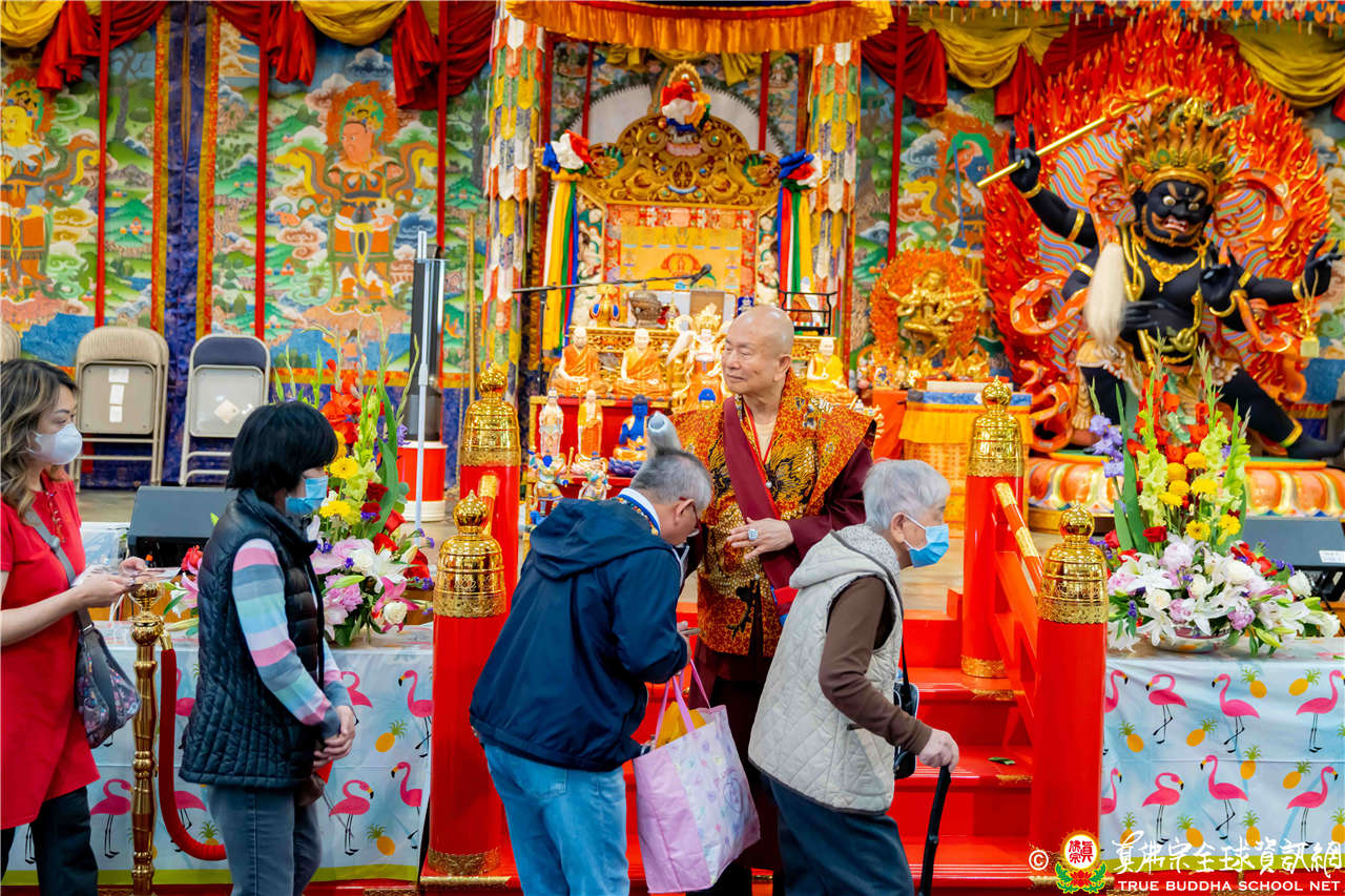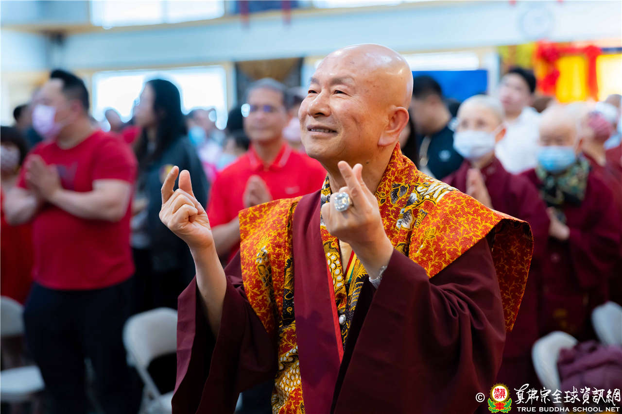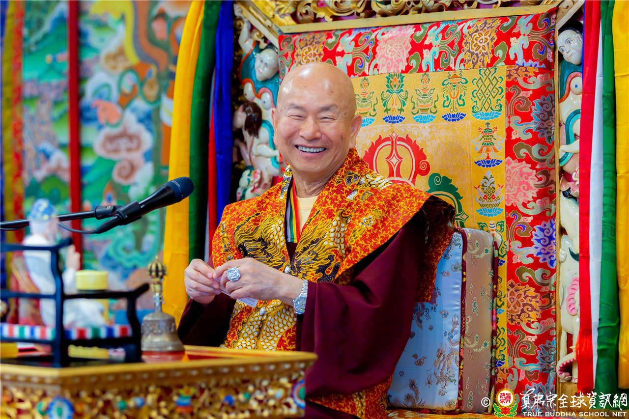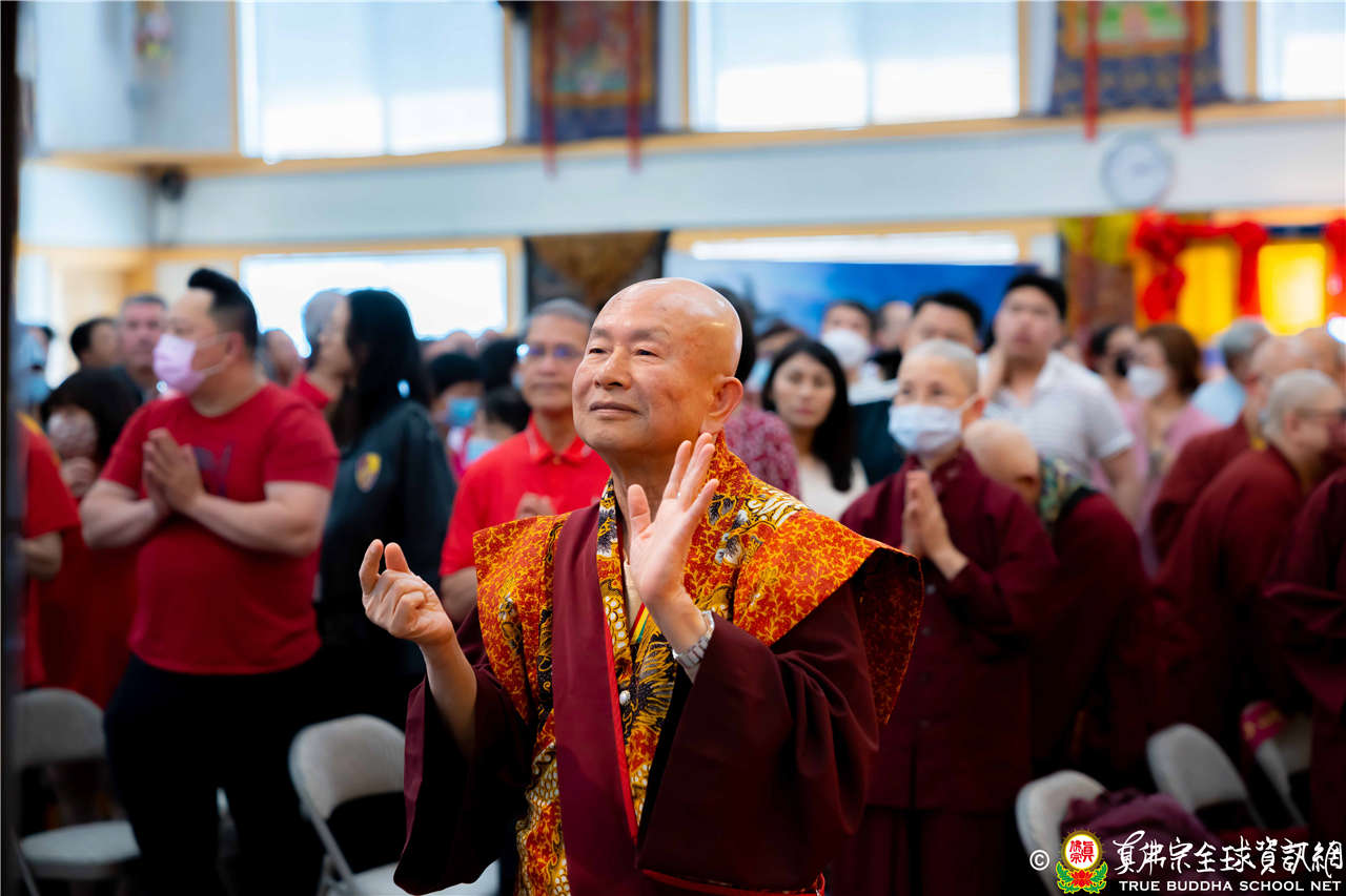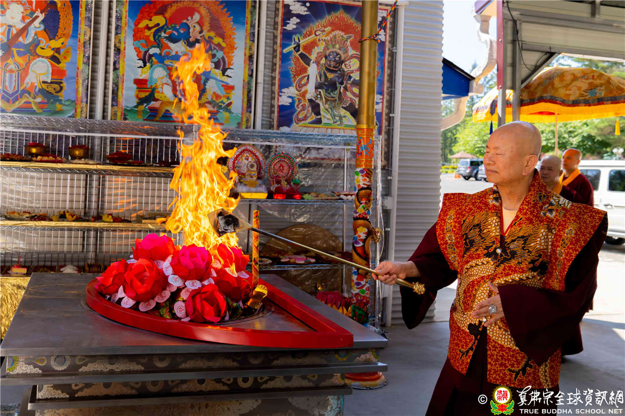 2023年6月25日,西雅圖彩虹雷藏寺恭請聖尊蓮生法王主壇長壽佛護摩法會。法王預告下個星期日護摩法會主尊為滿願童子,接著向大家講解滿願童子的咒語和手印。