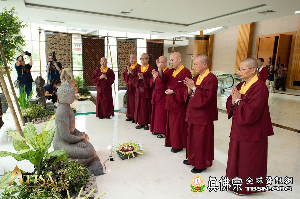 蓮飛上師也應邀致詞,提到婆羅浮圖殊勝的歷史定位,也向貴賓們介紹聖尊蓮生活佛昔日蒞臨印尼的盛況。聖尊的多篇文章之中,提到了阿底峽祖師,上師並且與大家分享師尊文章「阿底峽事師十二年」。