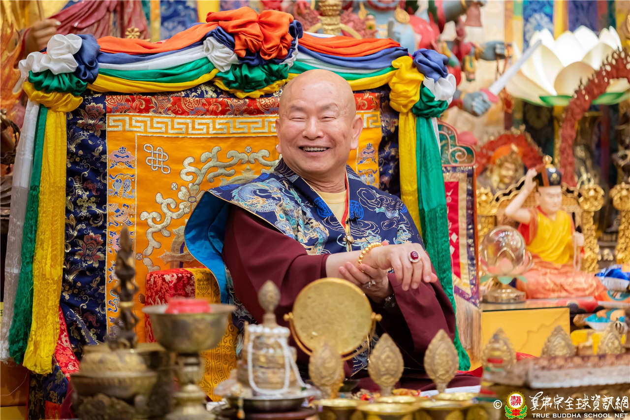 聖尊精闢的開示,令四眾弟子聽得津津有味,內心充滿法喜!聖尊給予皈依灌頂和加持後,大眾歡喜列隊,一一領受慈悲的聖尊以拂塵加持。