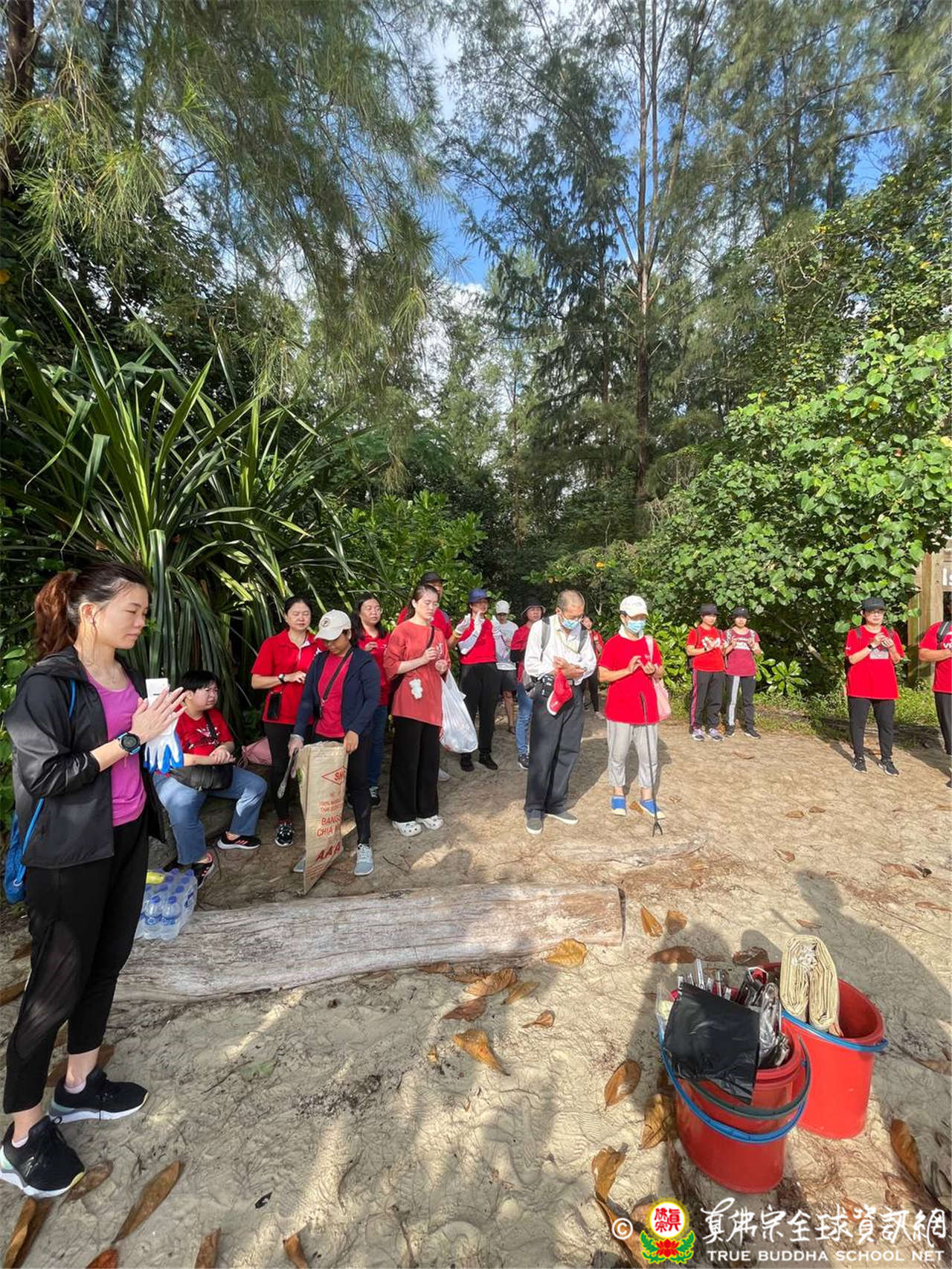 新加坡是一個非常重視環境清潔的國度,淨灘前,蓮花漢紳師兄先解說這項活動的深意,不僅是保持新加坡的清潔、安全和可持續性盡一份力。由於海灘上的垃圾,可能透過洋流從遠處而來,如果未將其清除,很可能又再次造成汙染,危及生態環境。接著釋蓮茹教授師也提醒大家,以慈悲心來對待此次的活動,不要對丟垃圾的人產生惡念,不要升起厭惡或責怪他們的心,反而應該視為感恩的心,讓大家有機會參與這項活動。同時還可以利用此寶貴的機會練習專一,撿垃圾之時也持根本上師心咒,保持心中的光明,培養正念的機會。
