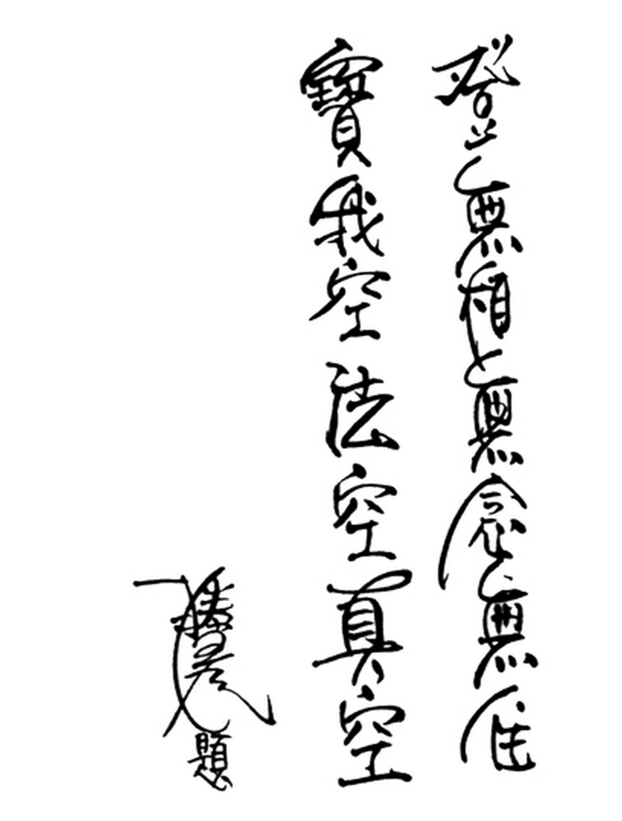 2000年,根本上師親書賜下法偈:「登無相無念無住。寶我空法空真空。」