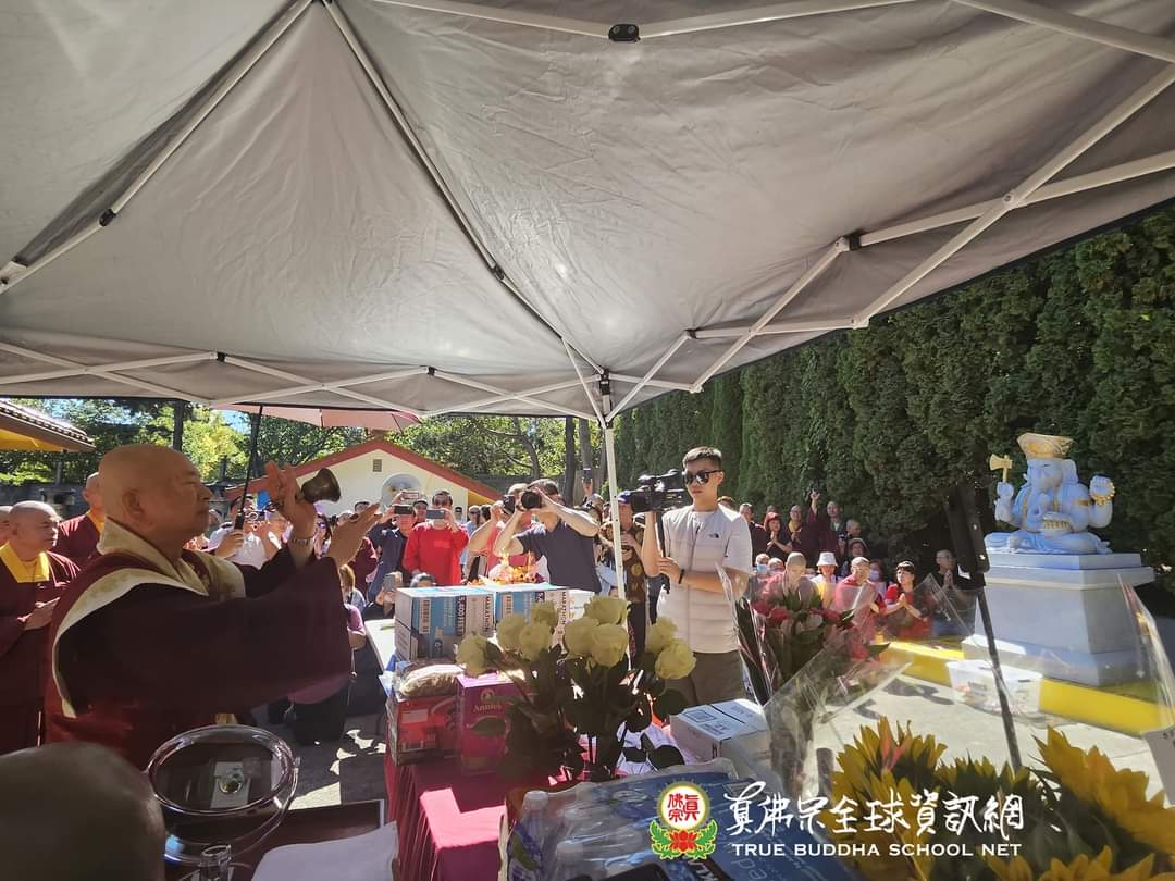 西雅圖時間2023年9月14日下午,蓮生法王盧勝彥師尊為西雅圖雷藏寺新增佛像開光。