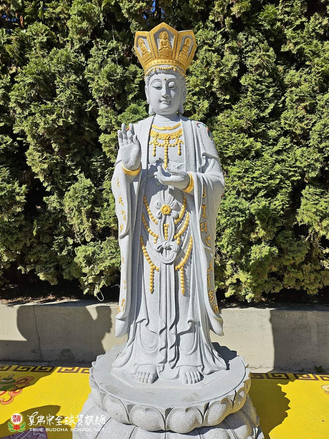 屹立在西雅圖雷藏寺後方的石雕佛像有:高王觀世音菩薩、愛染明王尊者、摩利支天菩薩、大力金剛及紅財神,並有真佛傳承海會巨大壁畫。