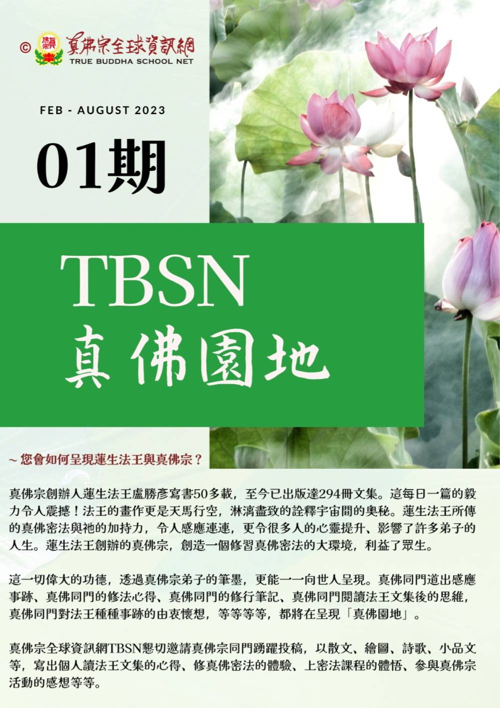 2023年9月15日,真佛宗全球資訊網負責人蓮花月琴,歡欣向蓮生法王盧師尊呈上首次「TBSN真佛園地」文章結集,並祈求師尊加持稿源不斷,讓真佛宗全球資訊網增添豐富內容。