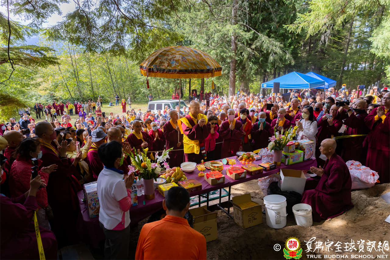 西雅圖2023年9月17日午時,聖尊蓮生法王盧師尊於彩虹雷藏寺主持生基儀式。