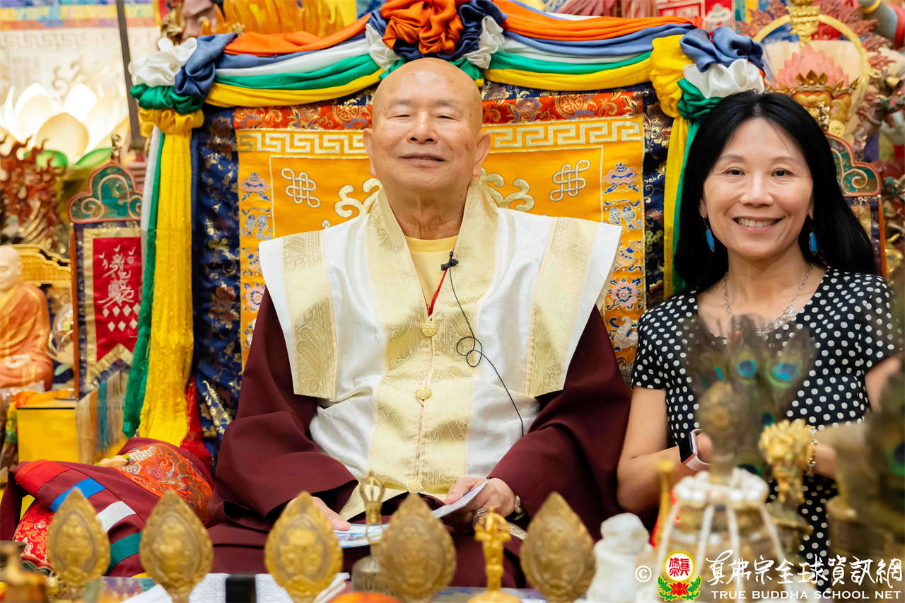 2023年9月16日,美國西雅圖雷藏寺延續著上星期秋季大法會的盛況,人潮洶湧,寺裡寺外坐滿了來自世界各國的弘法人員與善信大德,嘉賓Sun Burford女士也前來參與盛會,她熱心公益,目前擔任華大東亞圖書館之友聯席主席、Newcastle City藝術委員會董事、華州語言教師會董事,並正競選Newcastle市議員。大眾聚精會神的跟隨著聖尊蓮生活佛盧勝彥修持大白蓮花童子本尊法。