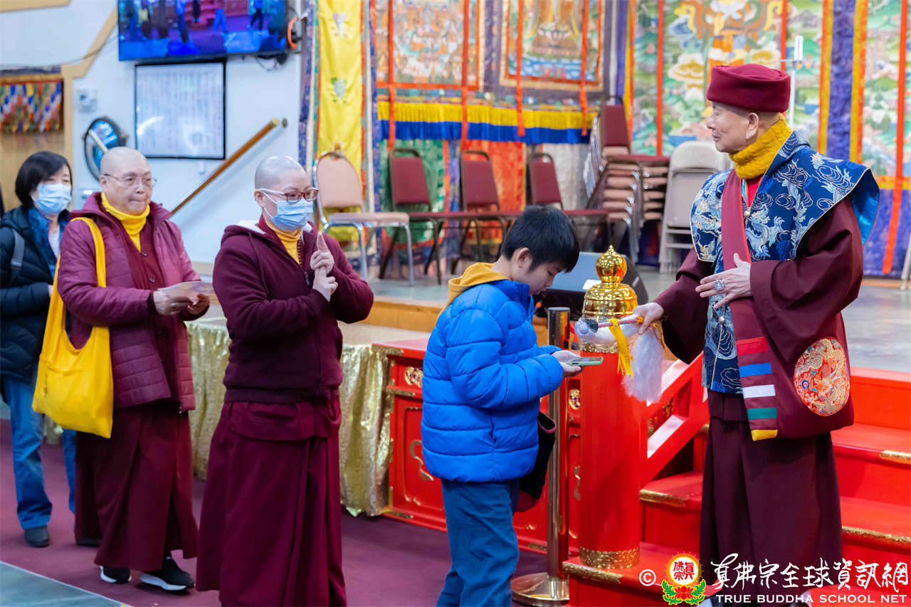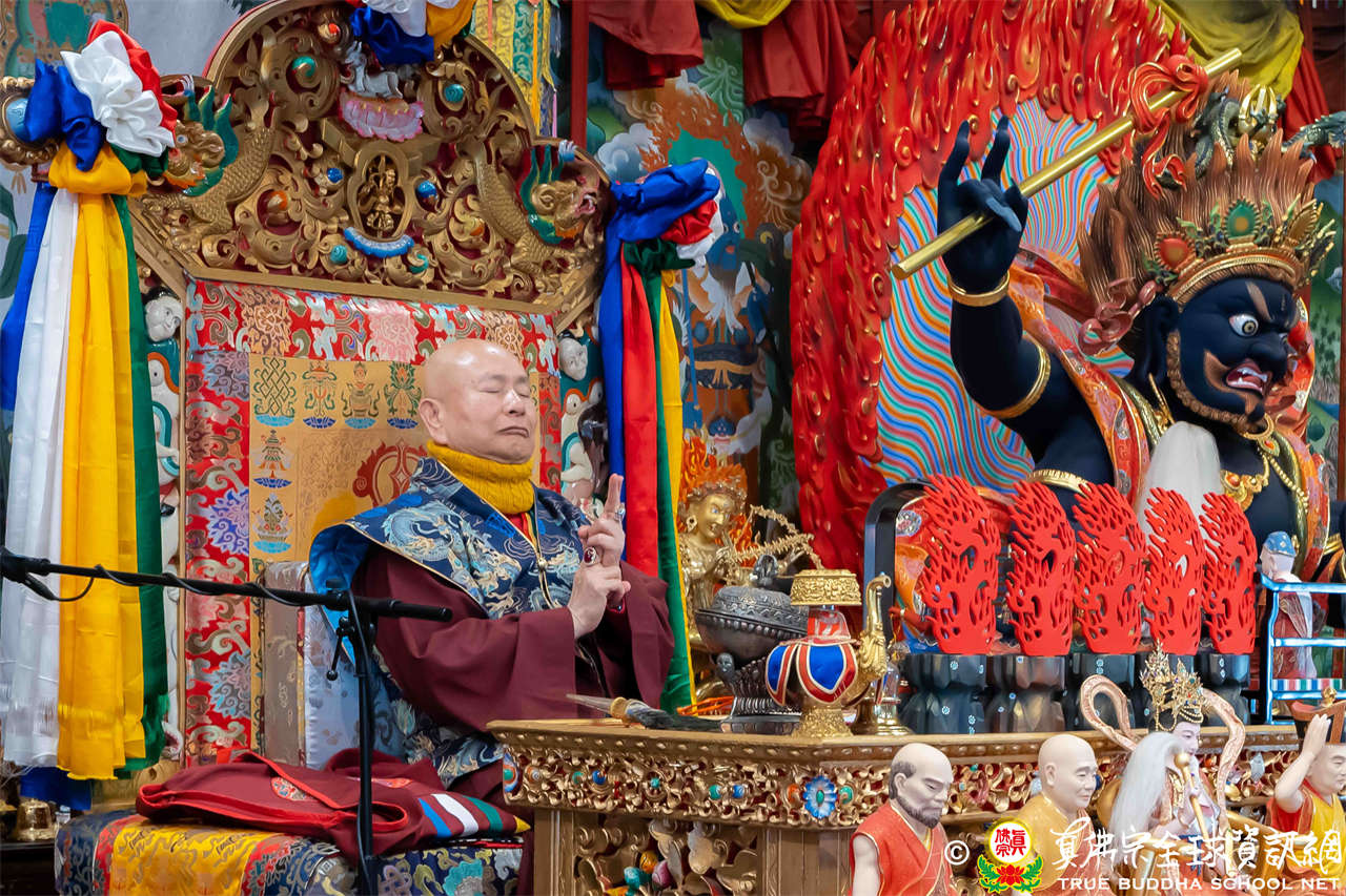 法王開示至此,護摩法會圓滿結束。接著,法王與線上的弟子打招呼,並爲現場出席者賜授五色不動明王法灌頂。