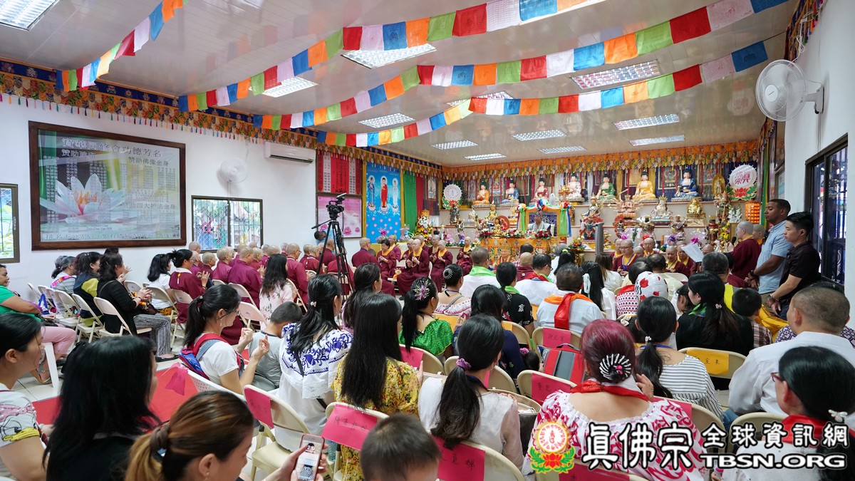 開光儀式當日,艷陽高照,寶華同修會的同門將道場佈置得十分隆重,壇城的中央鋪上長長的紅地毯直到馬路邊,義工同門準備了許多七彩的氣球,和許多的點心、飲料供與會的信眾享用。