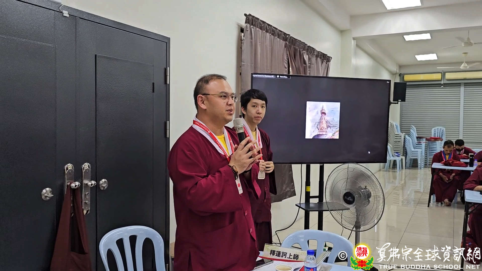 在隆重的供僧大會、釋迦牟尼佛護摩法會後,繼續進行教育實體課程,本堂課主題為《放生應有的正確觀念及做法》,由法務處處長釋蓮東上師主講。除了講解「何謂放生?」課中更交替引用師尊文集內容做引證,讓學員更一步瞭解「戒殺、放生、護生」。