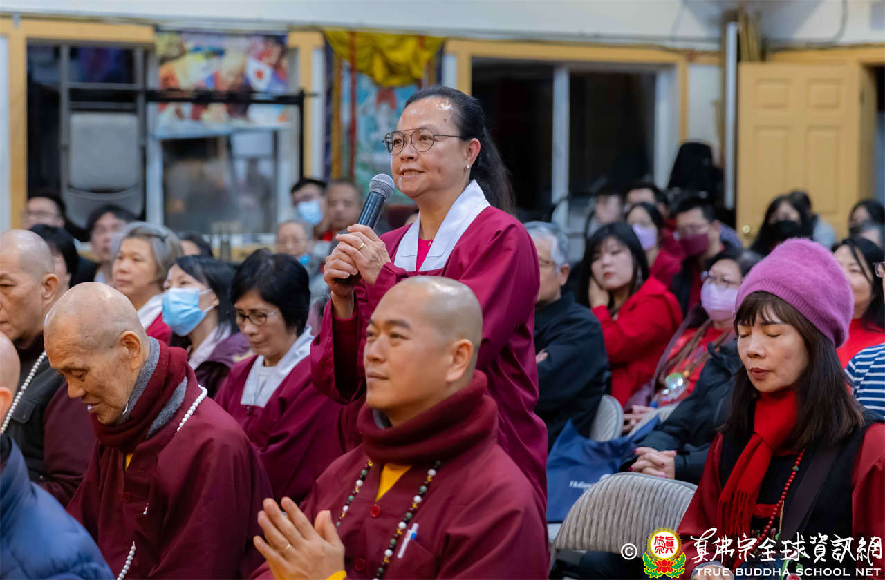 接著,法王開始為弟子釋疑解惑,來自新加坡的弟子問: