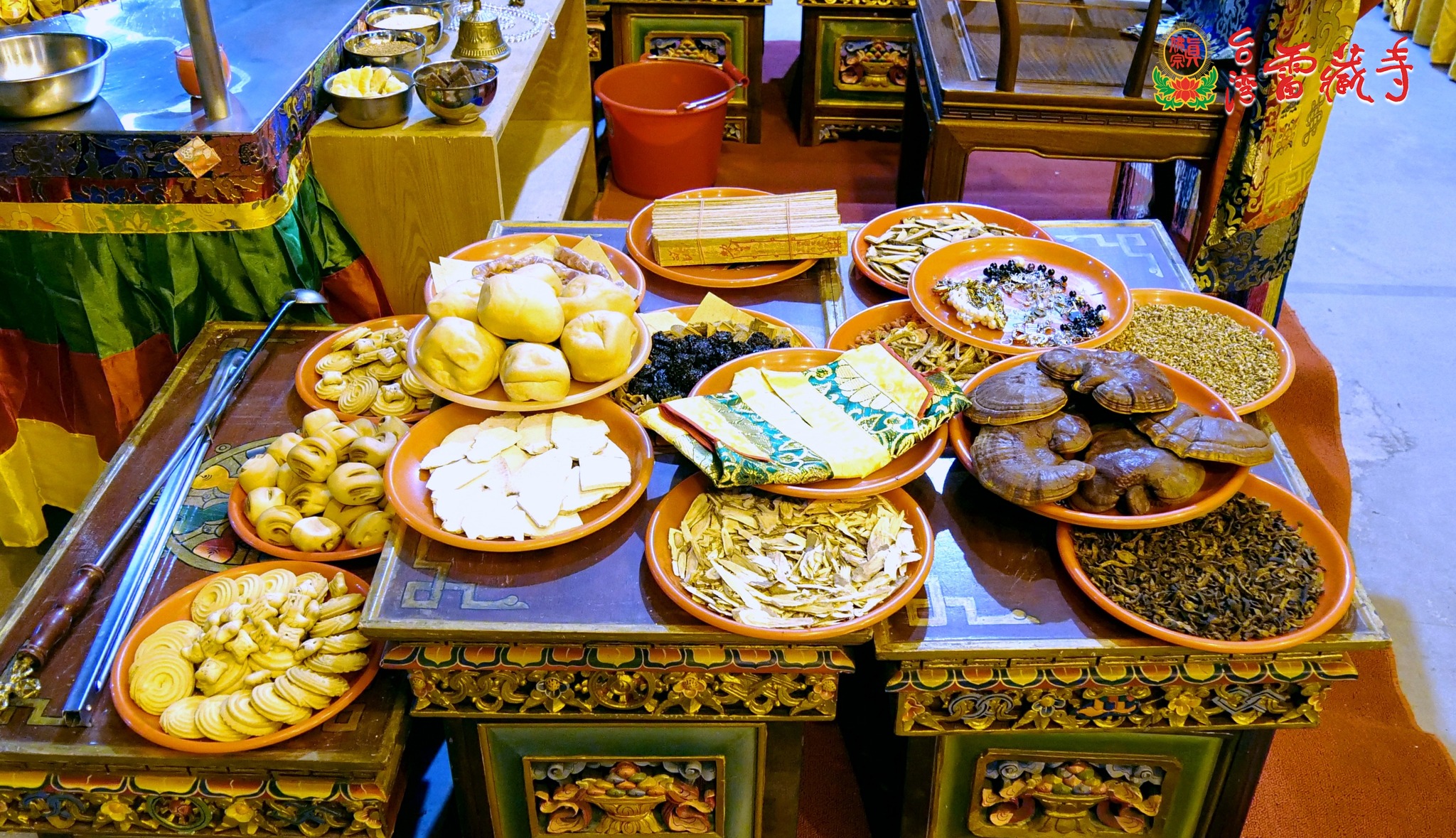 當天恰逢藥師如來佛誕,寺方特別虔敬生日蛋糕祝賀,與會師兄師姐們也敬備各種美味佳餚上供,除了供養金母大天尊也祝賀藥師如來佛誕。此次的護摩,下爐供品一樣非常豐盛,應有盡有一應俱全,寺方的用心準備一覽無遺。隨著大眾陸續抵達,龍邊廣場生氣蓬勃熱鬧了起來。