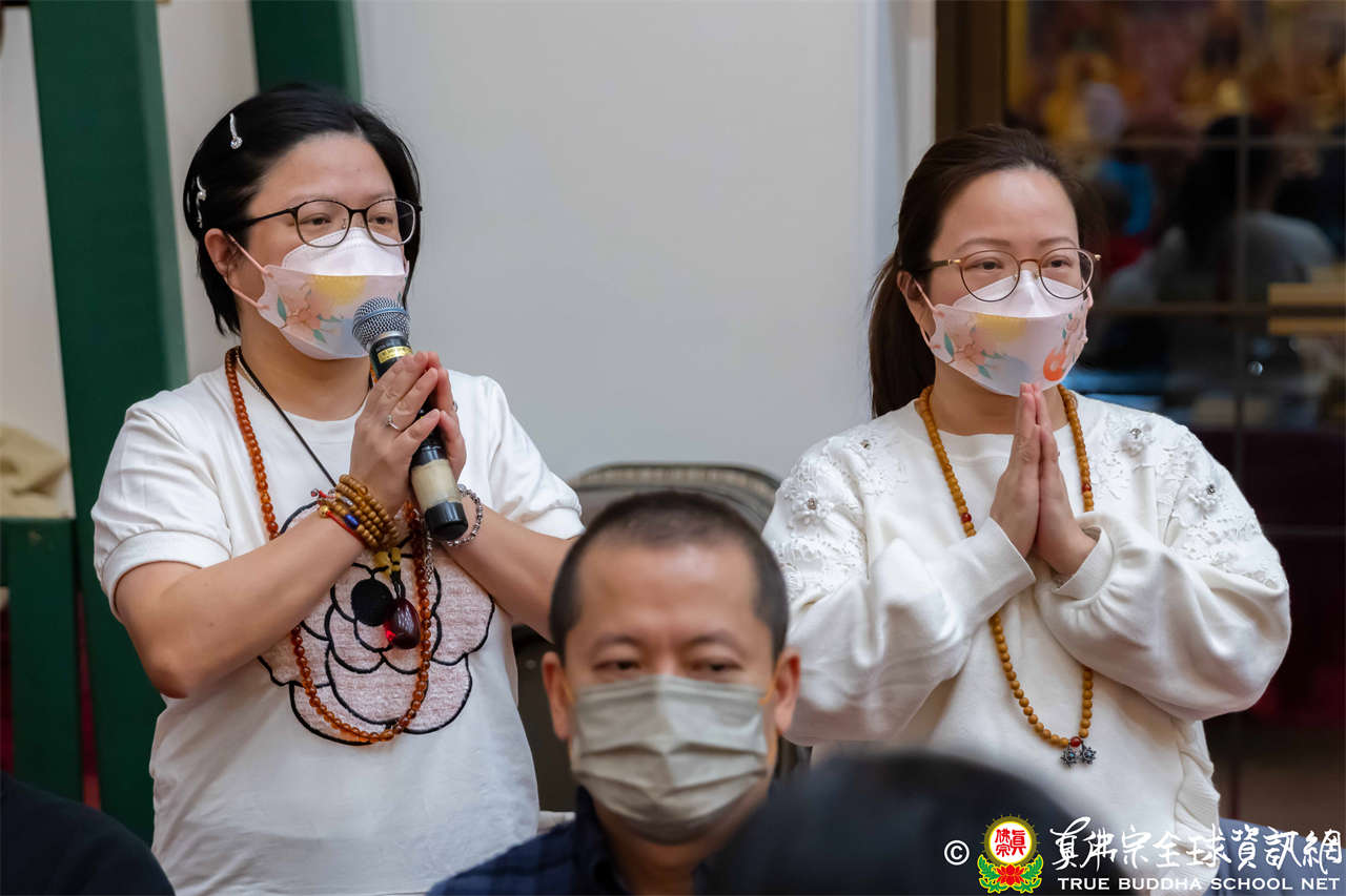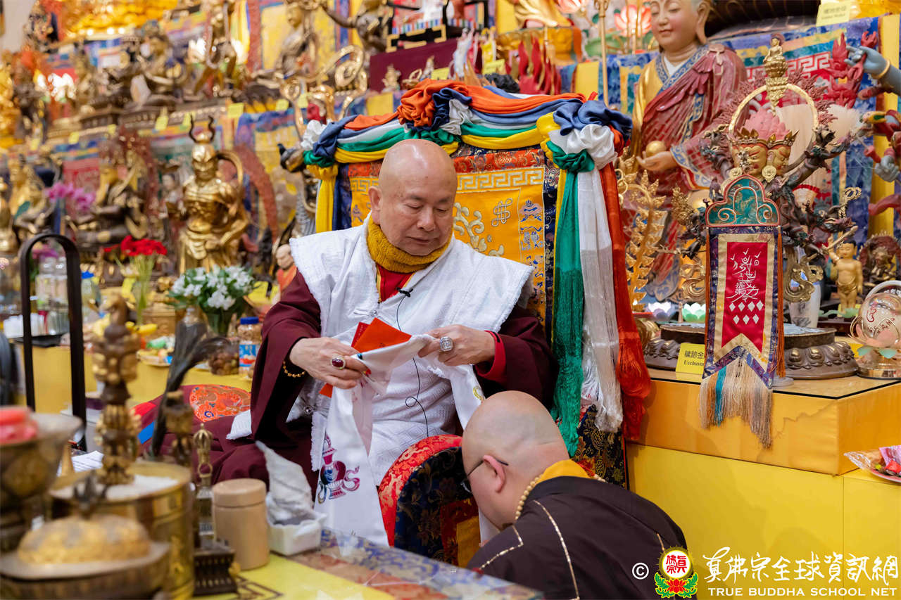 聖尊講解維摩詰經後,為新皈依者做皈依灌頂,加持大悲咒水,並以拂塵一一加持與會大眾。