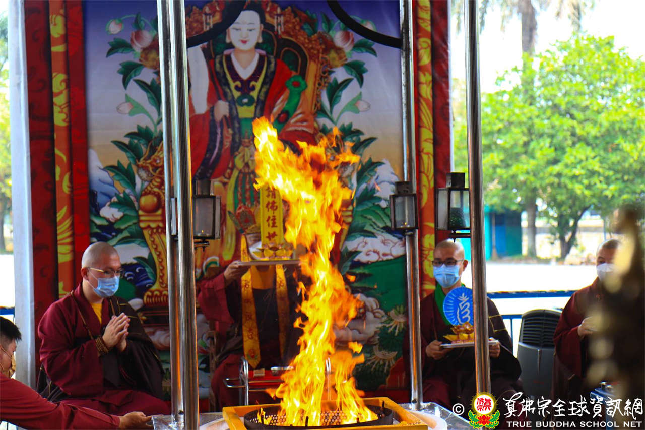 真佛宗印尼雷藏寺請佛住世「瑤池金母護摩火供」 印尼雷藏寺恭請蓮飛上師於2023年11月19日舉辦了請佛住世「瑤池金母護摩火供」修法迴向聖尊蓮生活佛: 身體健康常喜悅,百病不侵長安樂, 長養活潑精氣神,無憂無慮恆自在。 龍天護法恆守護,四眾弟子皆迴向, 請佛住世不捨離,真佛常住於世間。