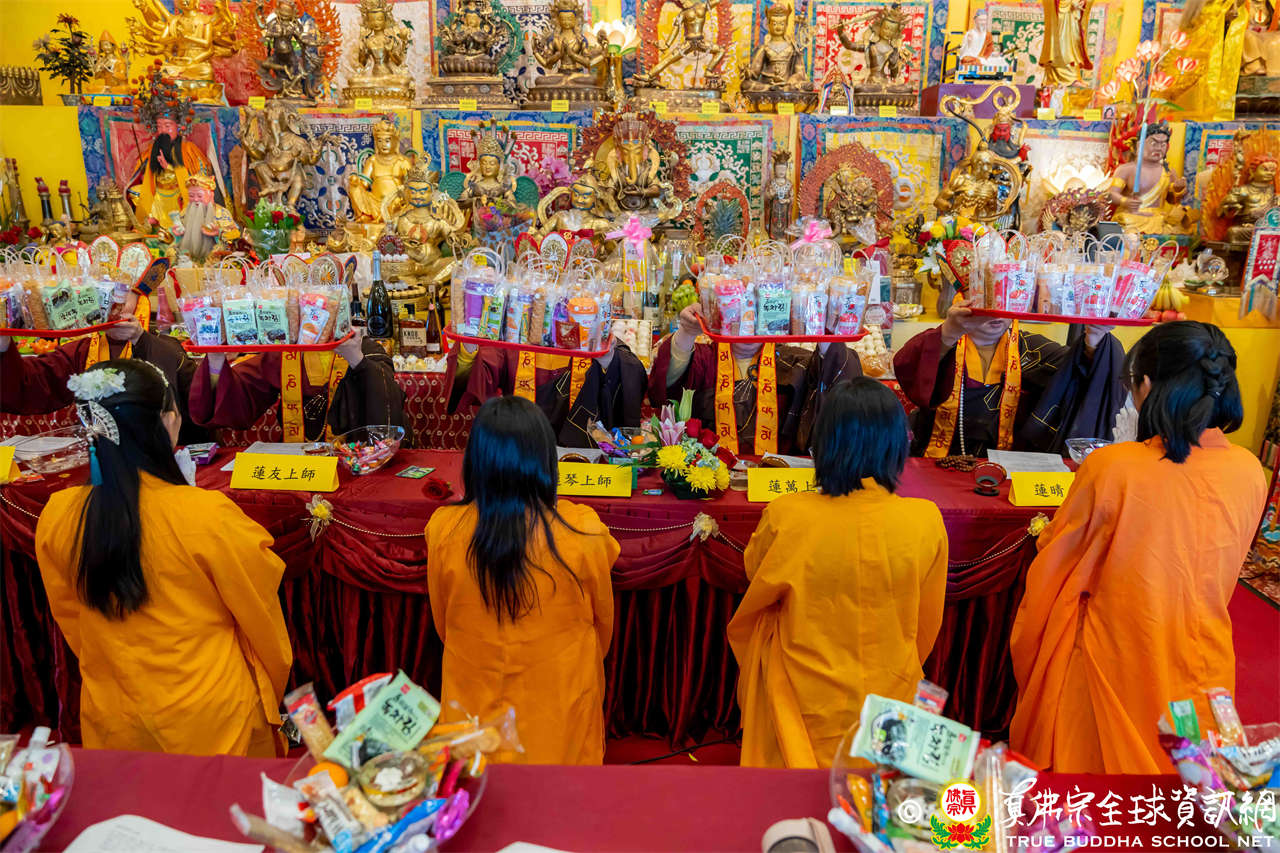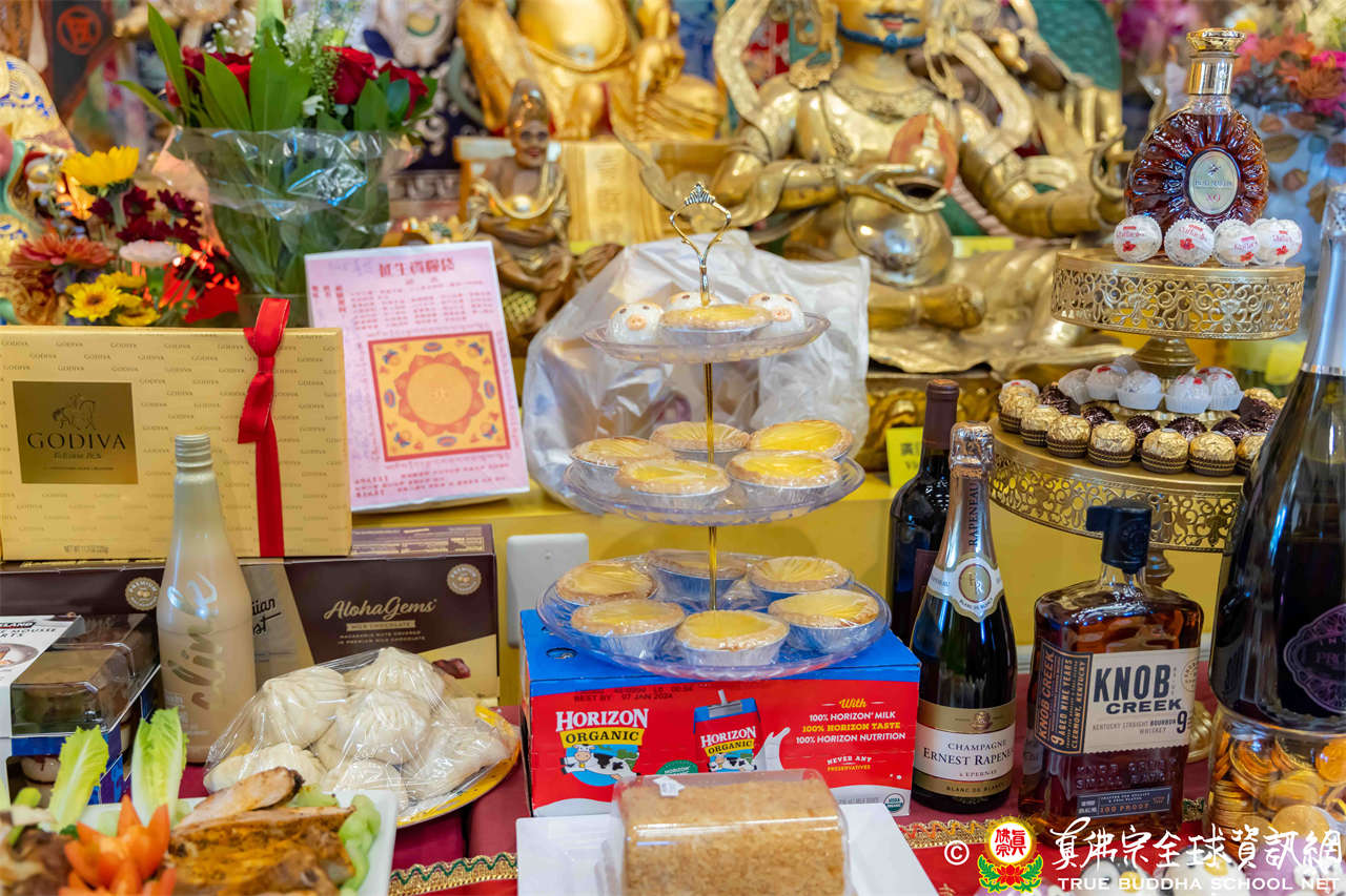 從2023年11月24日下午開始,西雅圖雷藏寺和彩虹雷藏寺的眾上師、法師及義工們,便滿懷著洋溢的熱情,在西雅圖雷藏寺緊鑼密鼓地佈置現場。他們把採購回來的鮮花、食品及禮品,帶著最虔敬的心進行設計、加工、包裝和擺放,重新裝飾成絢麗奪目、豐富多彩的貢品,供養給明日的薈供本尊瑤池金母大天尊等佛菩薩金剛護法龍天諸尊。