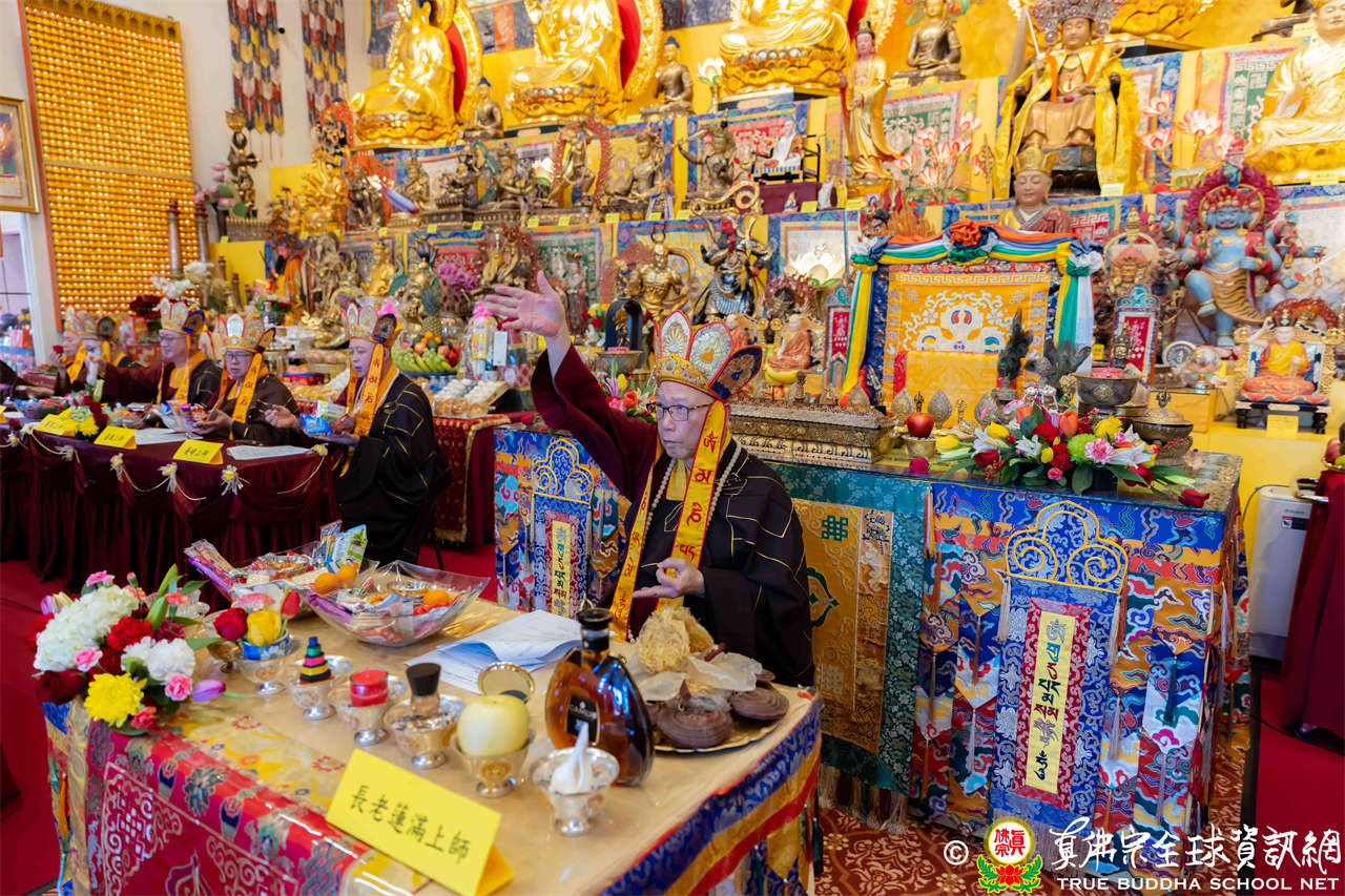 蓮滿長老致詞感恩瑤池金母放光加被,並感恩阿彌陀佛、十方三世諸佛菩薩慈悲護佑師佛與師母消災延壽、身心安康、請佛住世、長轉法輪,感謝所有參與的道場及弟子的共同發心,使得兩個場次的瑤池金母薈供法會都順利圓滿。