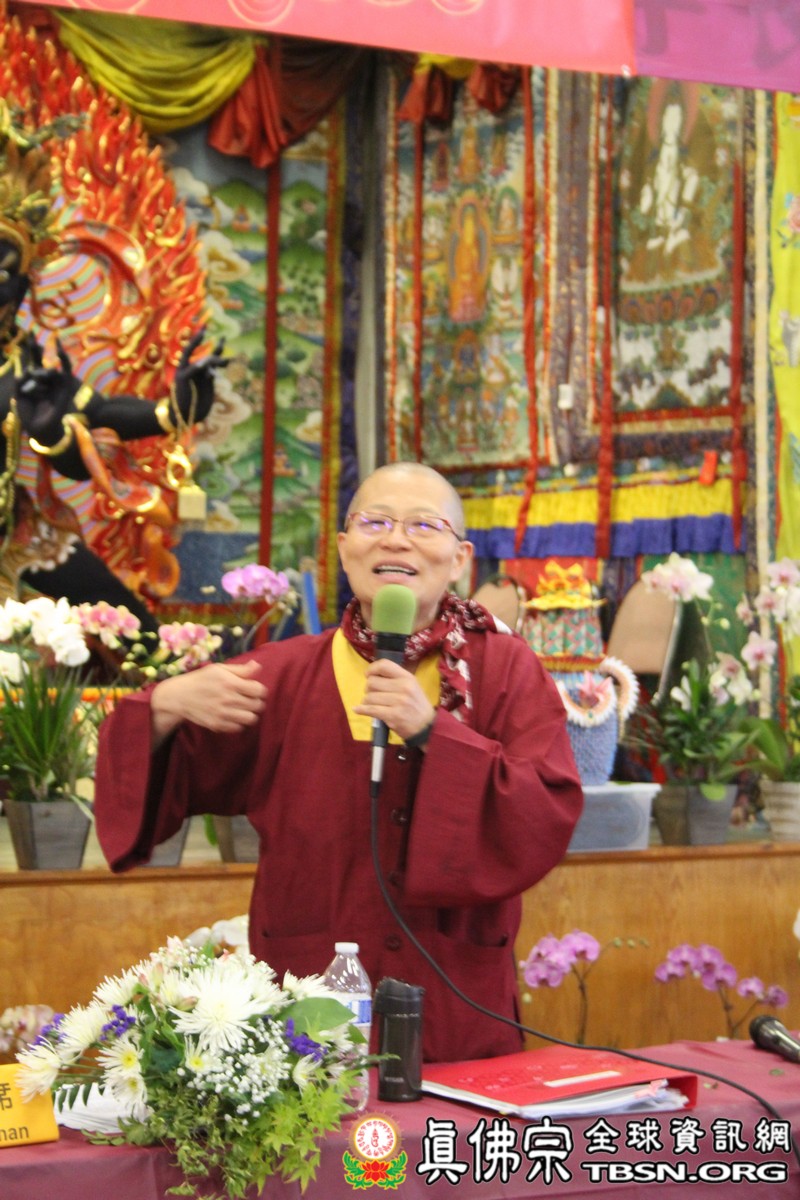 蓮花常智上師進一步帶領大家討論「弘法人員的常見過失」,許多的實際個案,都是值得大家省思。例如:同門受到某物灌頂,就不會墮入三惡道、購買某物供佛,就能往生佛國、包壇護摩等跨大不實,欺騙同門的個案。隨後,法務處長蓮東上師表示已經開始整理真佛密法灌頂類別,屆時會將相關資料提供給弘法人員。
