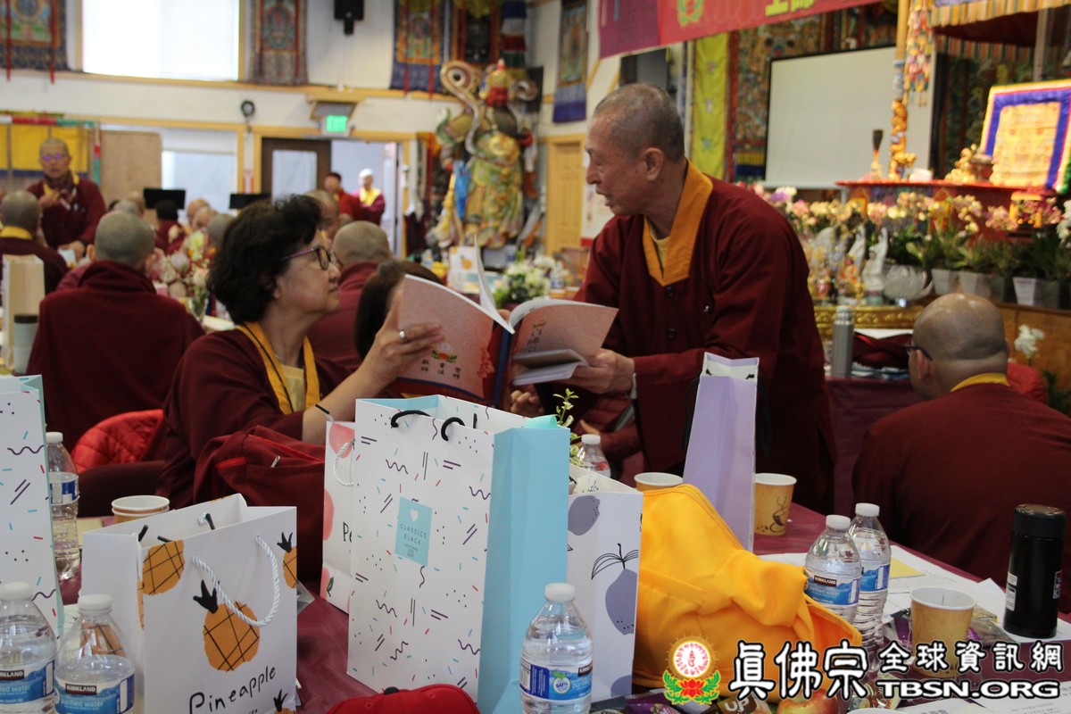 在此次會議中,會長頒發「當選證書」給常務委員,我們祝賀新一屆的宗委會常務委員當選,感謝上師們多年來無私的奉獻與付出,藉著交換禮物,彼此交流與祝福。