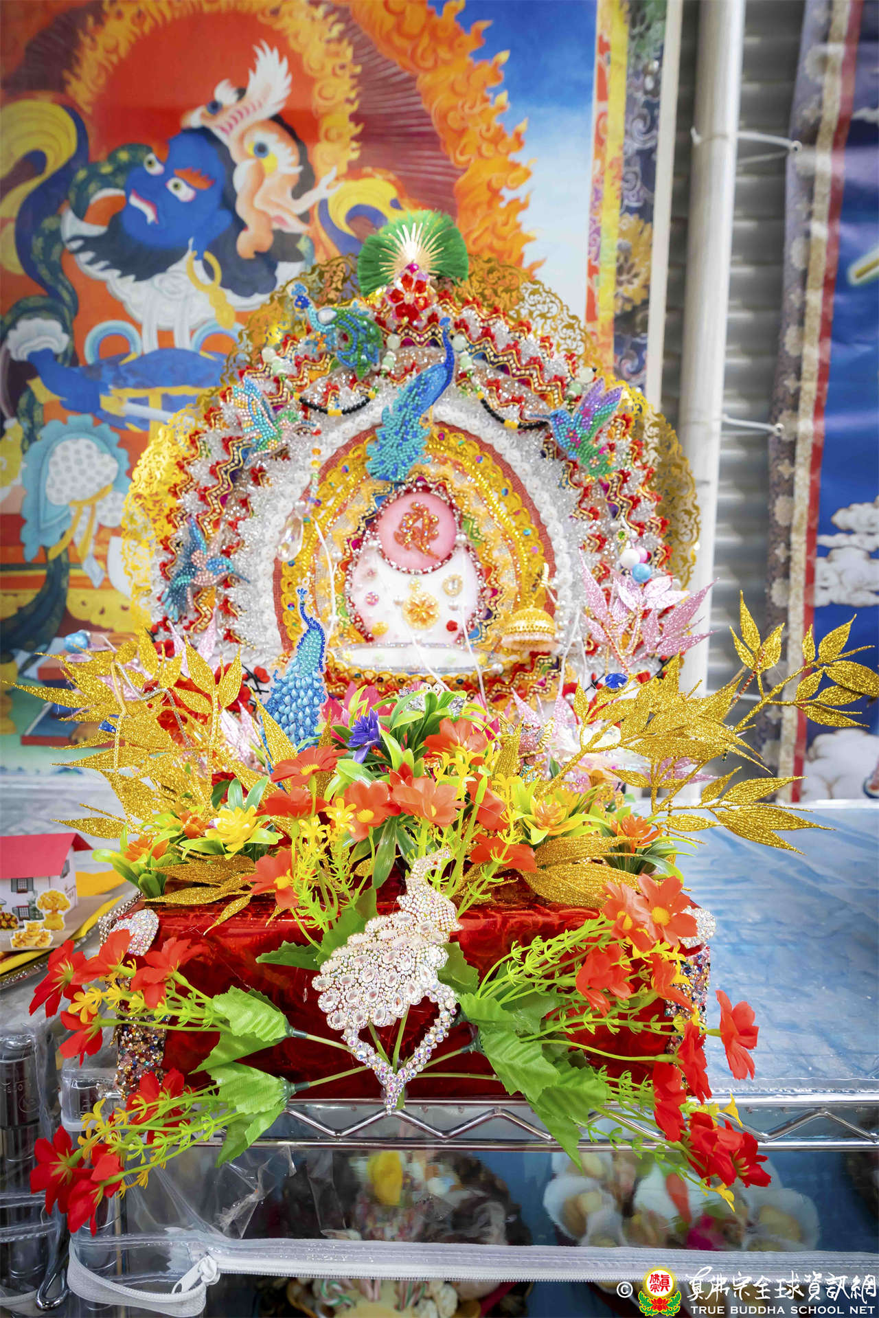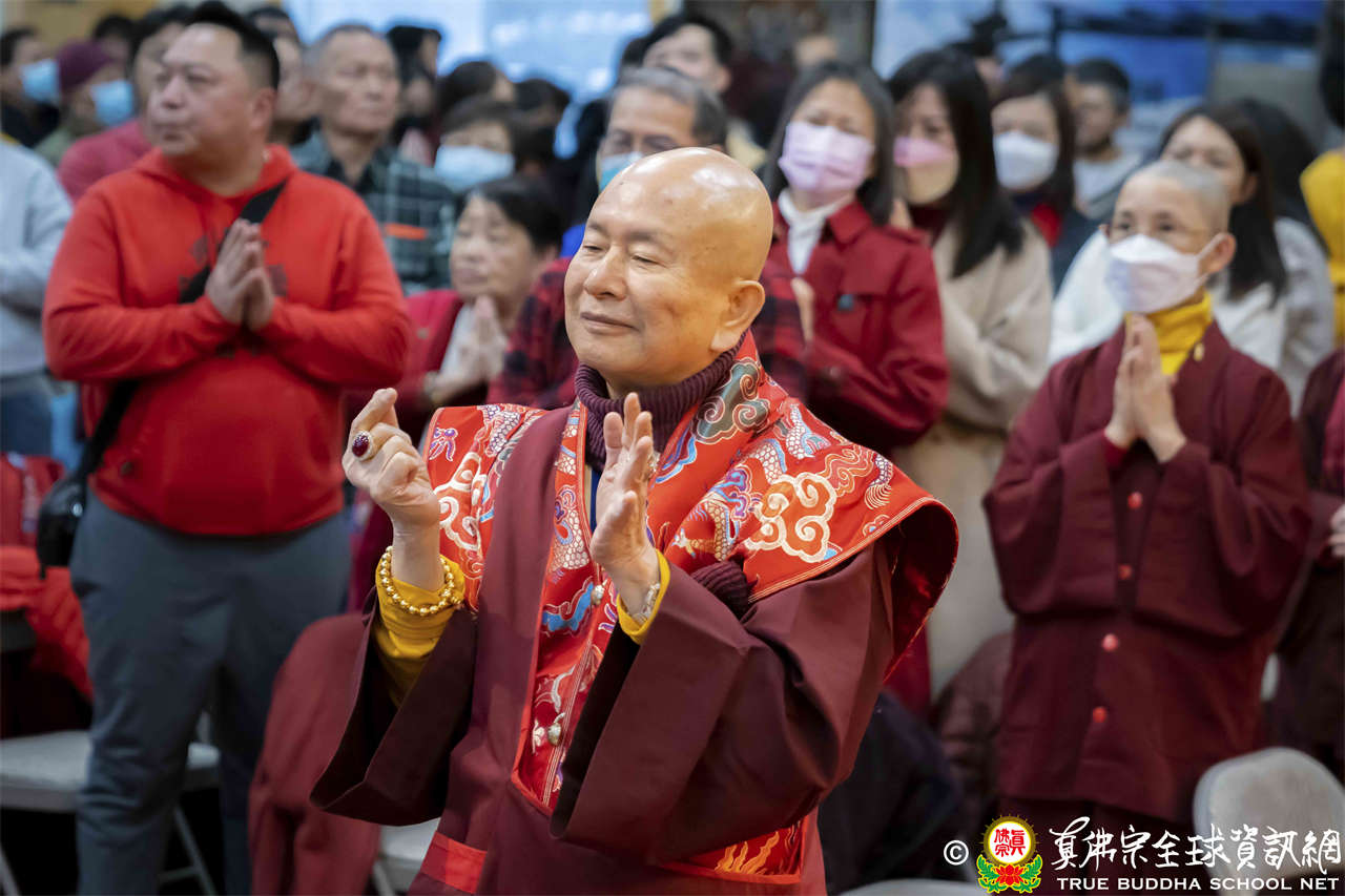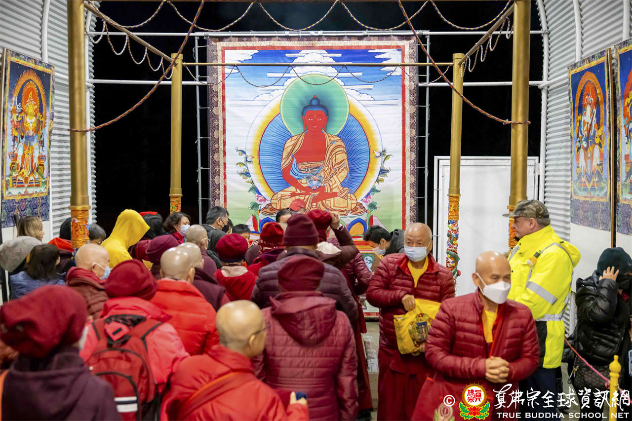 法王開示至此,護摩法會圓滿結束。接著,法王與線上的弟子打招呼,並爲現場出席者賜授阿彌陀佛法灌頂。