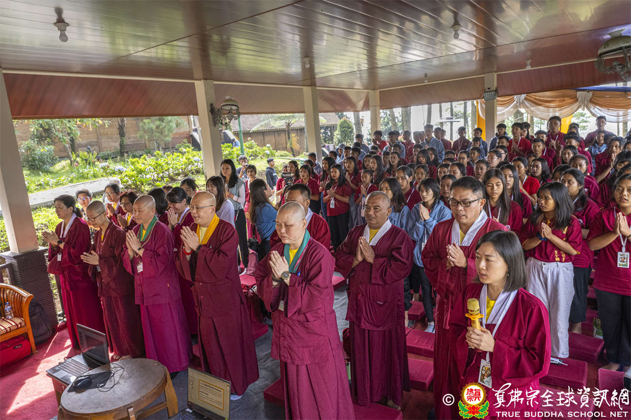 另外,令人欣喜的是本次是首度真青會跨國聯誼–印尼真青會與新加坡青年團。25日當天,新加坡青年團一行共16人,參與本次狂歡節。同時邀請真青會會長釋蓮茹教授師、副會長釋蓮竹教授師做佛法互動方享,由於印尼真青們多數不懂中文,所以由佩芬助教擔任即席口譯,讓印青們了解分享內容,這也是二位教授師第一次以這樣的上課模式。