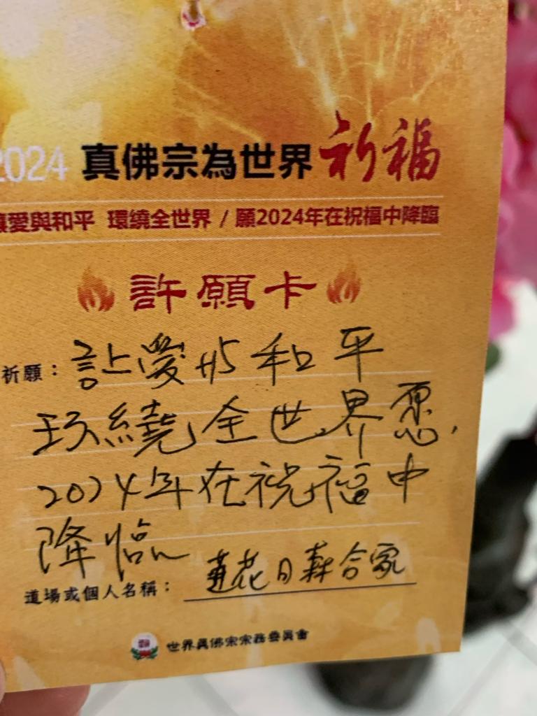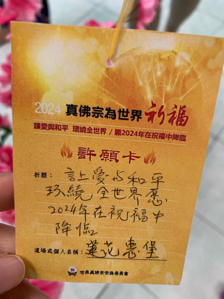 感謝馬來西亞中道堂為世界祈福 點一盞燈,為世界燃起希望。 點一盞燈,讓世界更明亮。 讓愛與和平 環繞全世界 願2024年在祝福中降臨 宗委會文宣處之2024真佛宗為世界祈福活動圓滿舉行! 感謝馬來西亞中道堂的參與! 每一份參與,都是一份心力。每一份心力,都為這世界帶來光明。真佛宗道場萬分用心的準備與參與,每一位參與持咒的同門,都令人感動!2024,因為有您們的愛,就有了曙光!
