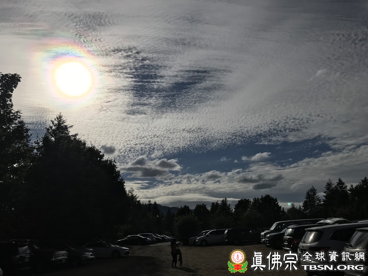 2018年9月9日(星期日),雖然西雅圖天氣預報是個陰雨天,但到了彩虹雷藏寺,卻是大日普照,更有同門在上雷藏寺途中照到非常罕見的彩虹雲,讓人想起當初蓮生法王盧勝彥因跟著彩虹走而找到了彩虹雷藏寺這七星落地的大地理,真是巧妙無比。由於昨天是秋季大法會,今天來參加護摩法會的人潮絡繹不絕,千里迢迢來到真佛宗的聖地,大家猶如新年團拜般的喜氣洋洋,臉上都是掩不住的喜悅。