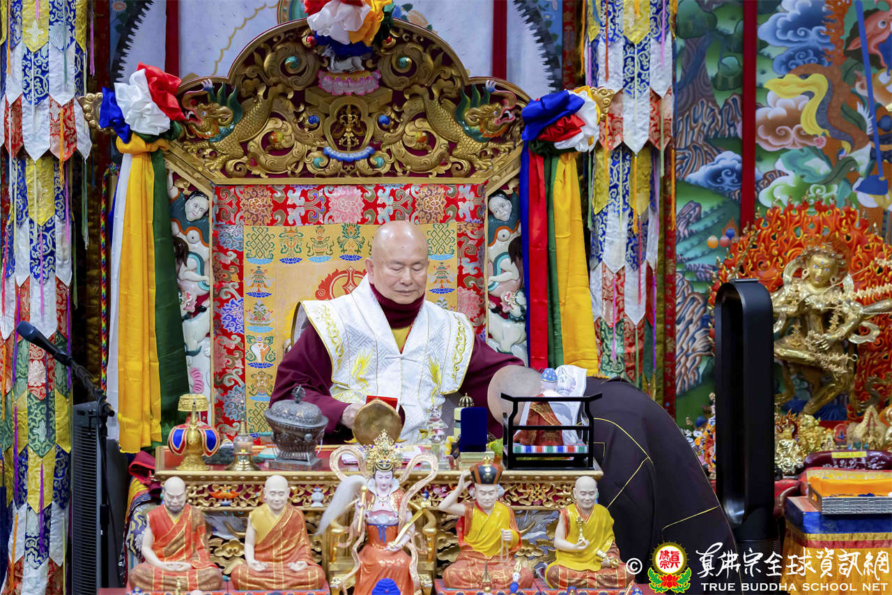 最後法王移駕到Zoom前與弟子們互動,弟子們誠摯地感恩師尊開示,向法王傾訴心中的感恩與敬意,法王慈悲賜授現場與會大眾「孔雀明王法」灌頂,法會圓滿結束。