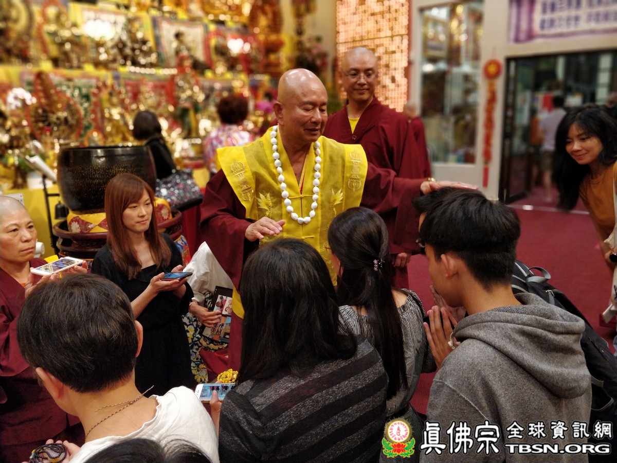 開示完後,聖尊與大眾一起唱誦佛號,並為求皈依的信眾賜受灌頂、加持大悲咒水,以及佛像開光,臨行前為大眾摩頂加持。感謝聖尊、師母一同出席本週六的同修。師佛教示,弟子眾等依教奉行。