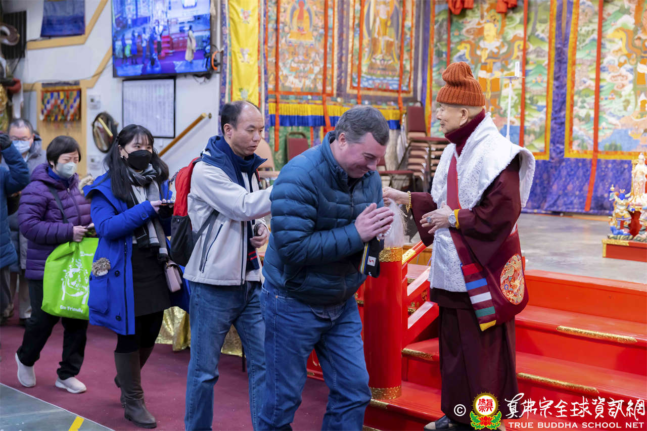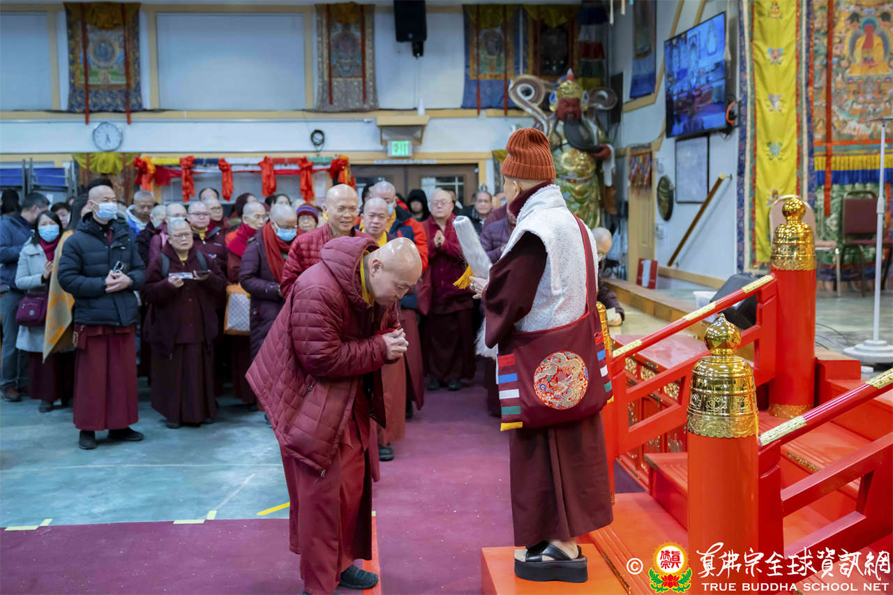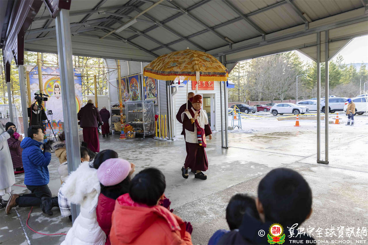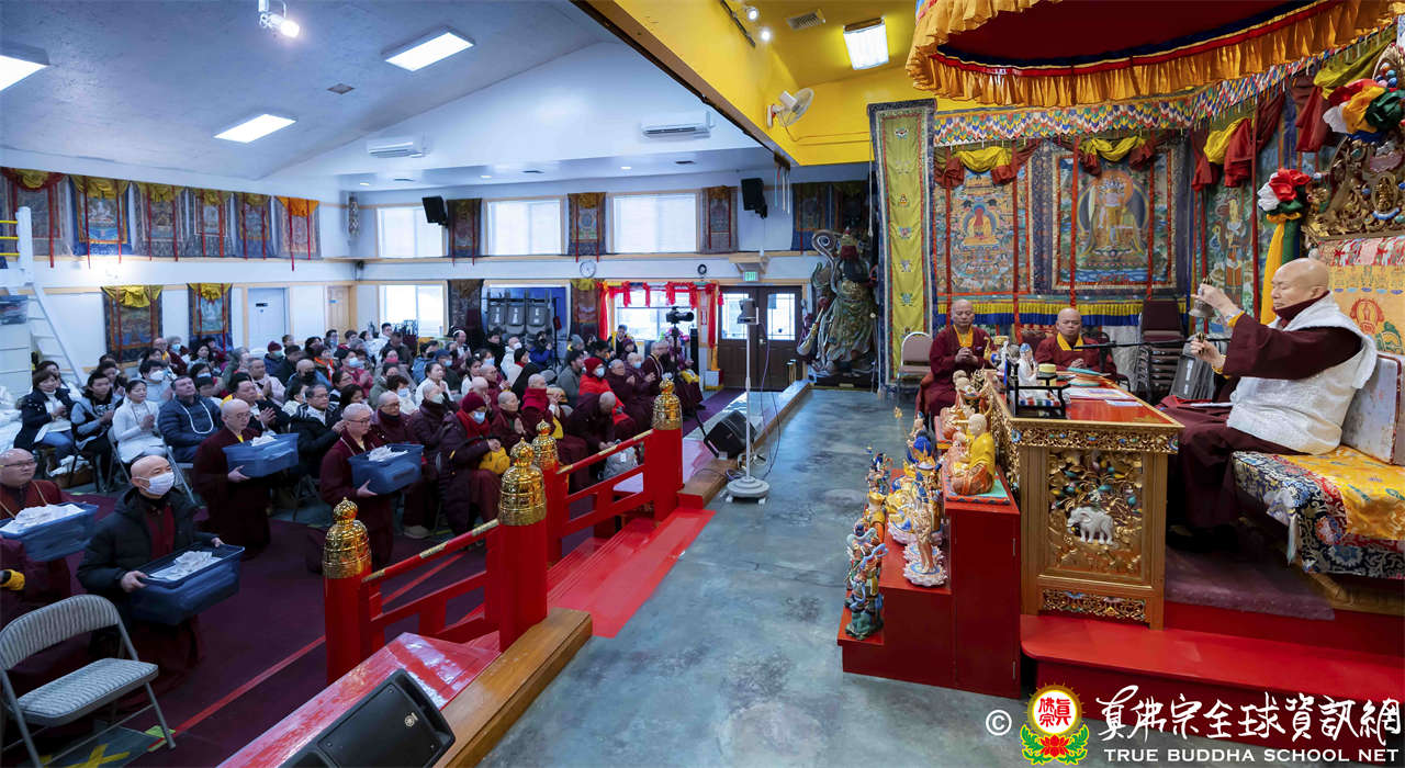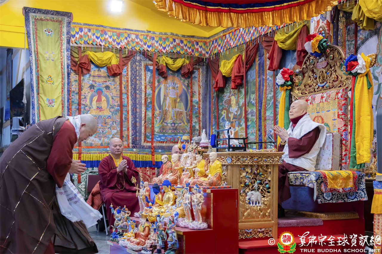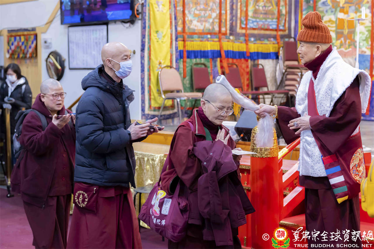 法王開示至此,護摩法會圓滿結束。接著,法王與線上的弟子打招呼,並爲現場出席者賜授觀世音菩薩法灌頂。