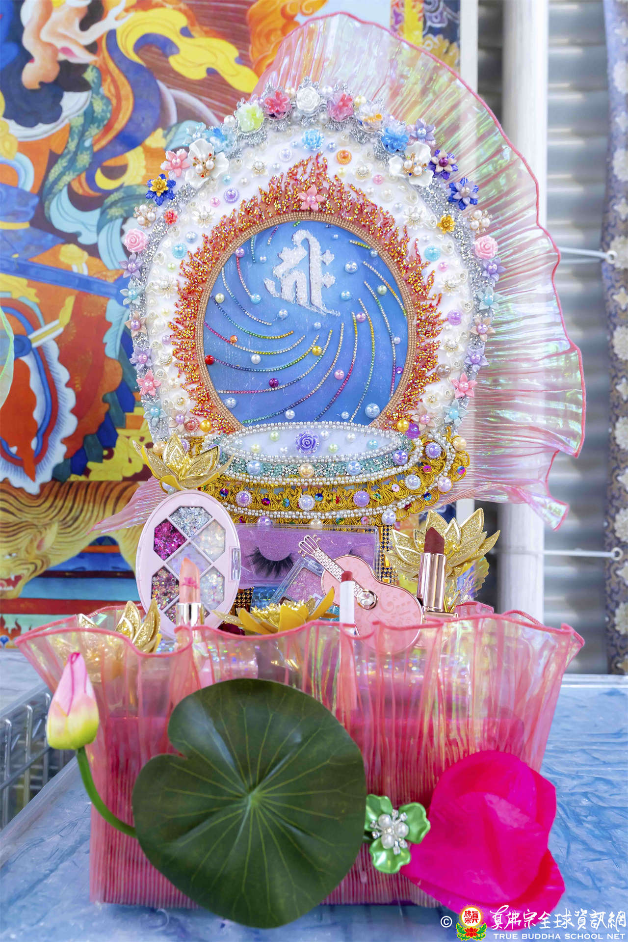 接著法王介紹法會主尊觀世音菩薩。法王說,只要是佛教徒,都知道觀音彌陀。中國的比丘見面就稱唸「阿彌陀佛」;比丘尼見面則稱唸「觀世音菩薩」。觀世音菩薩,廣大靈感、千百億化身、千處祈求千處現,苦海常作渡人舟。觀世音菩薩楊枝净水,一灑就是清淨;二灑自性清淨;三灑一切自性清淨,也就是所有衆生全部清淨。觀世音菩薩有很大的力量,祂也是如來,因爲慈悲衆生,才顯現觀世音菩薩,所以不可以忽視,尤其是奉觀世音菩薩為主尊的行者,更不能忽視。
