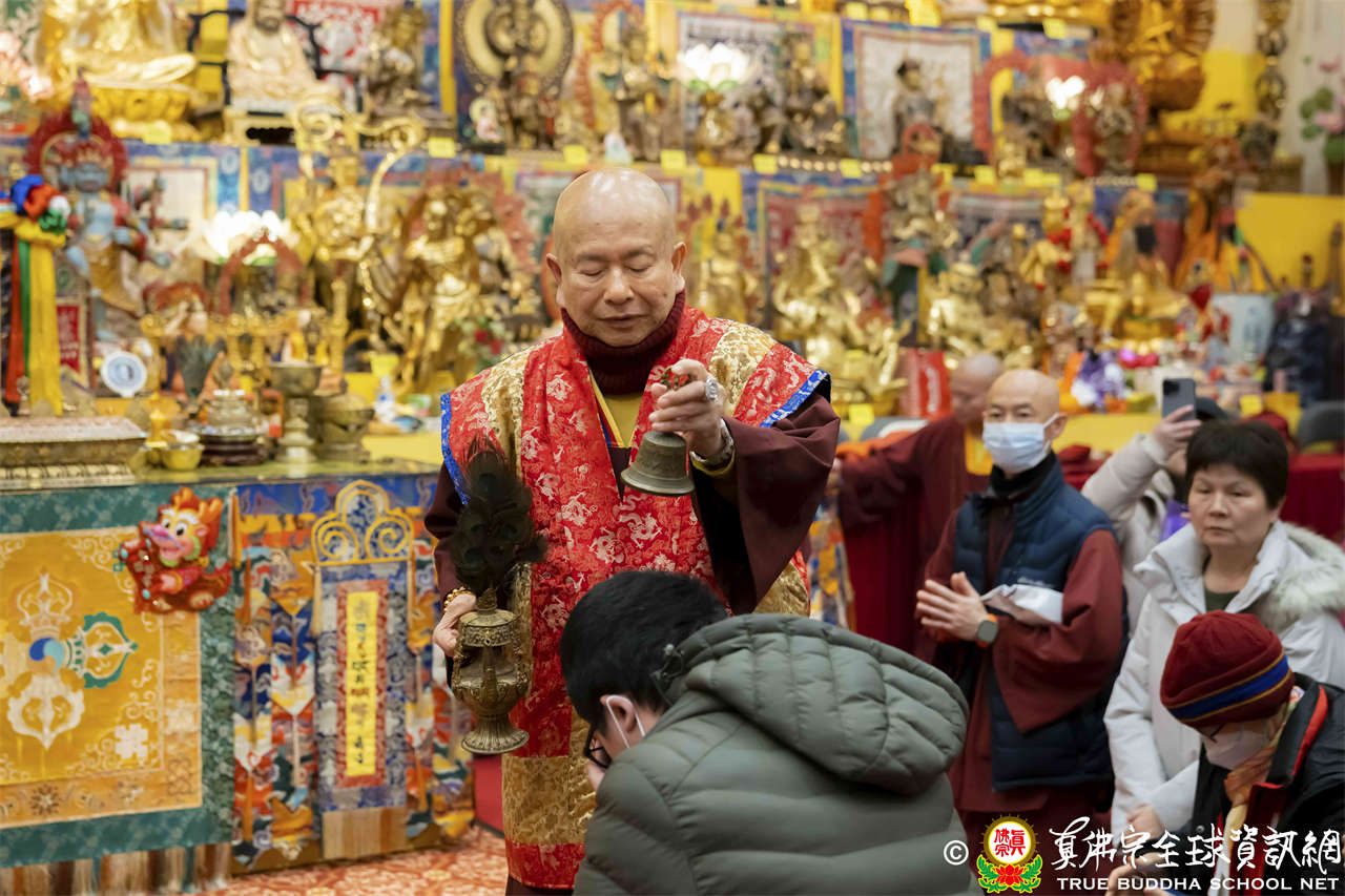 聖尊精彩的比喻與開示,讓信眾們理解到維摩詰居士的神通不可思議,大家報以熱烈的掌聲。接著法王為新皈依者做皈依灌頂,加持大悲水,並以佛塵一一加持與會大衆。