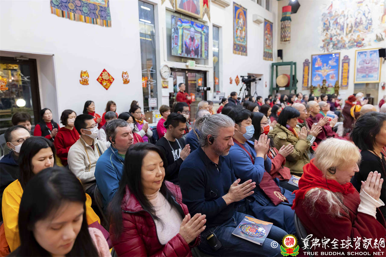 2024年1月20日,氣候冷冽,飄著小雨,西雅圖雷藏寺裡四衆們暖融融的引頸期盼聖尊蓮生活佛盧勝彥到臨,主持阿彌陀佛本尊法同修。