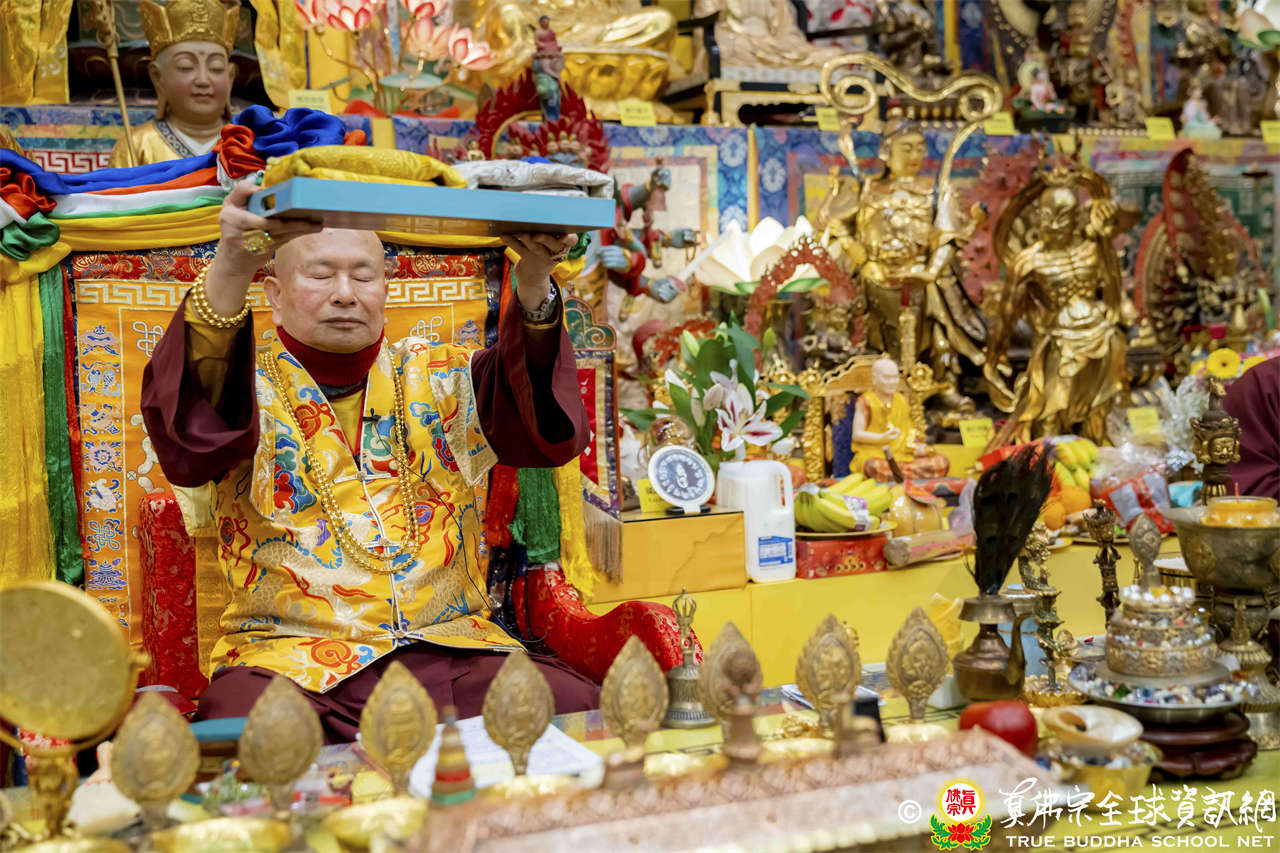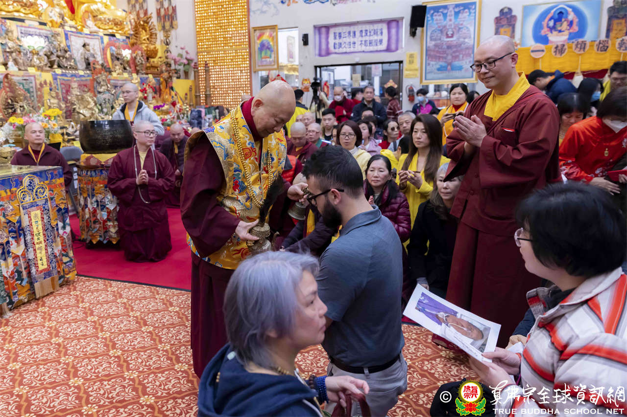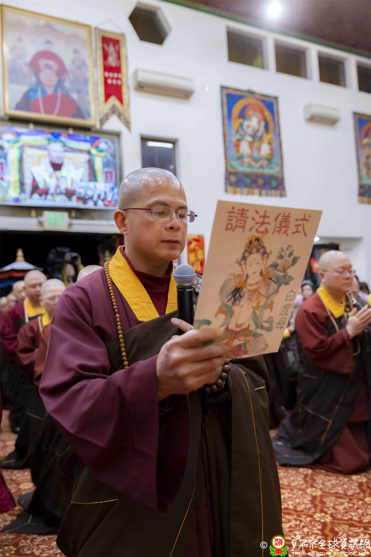 同修後, 西雅圖雷藏寺住持蓮吟上師及彩虹雷藏寺住持蓮彥上師率眾向聖尊請法,恭請聖尊主持2024年新春大法會——2月24日觀世音菩薩大法會暨傳授七眼佛母天眼通秘密法、2月25日聖觀音第一富豪法護摩大法會。