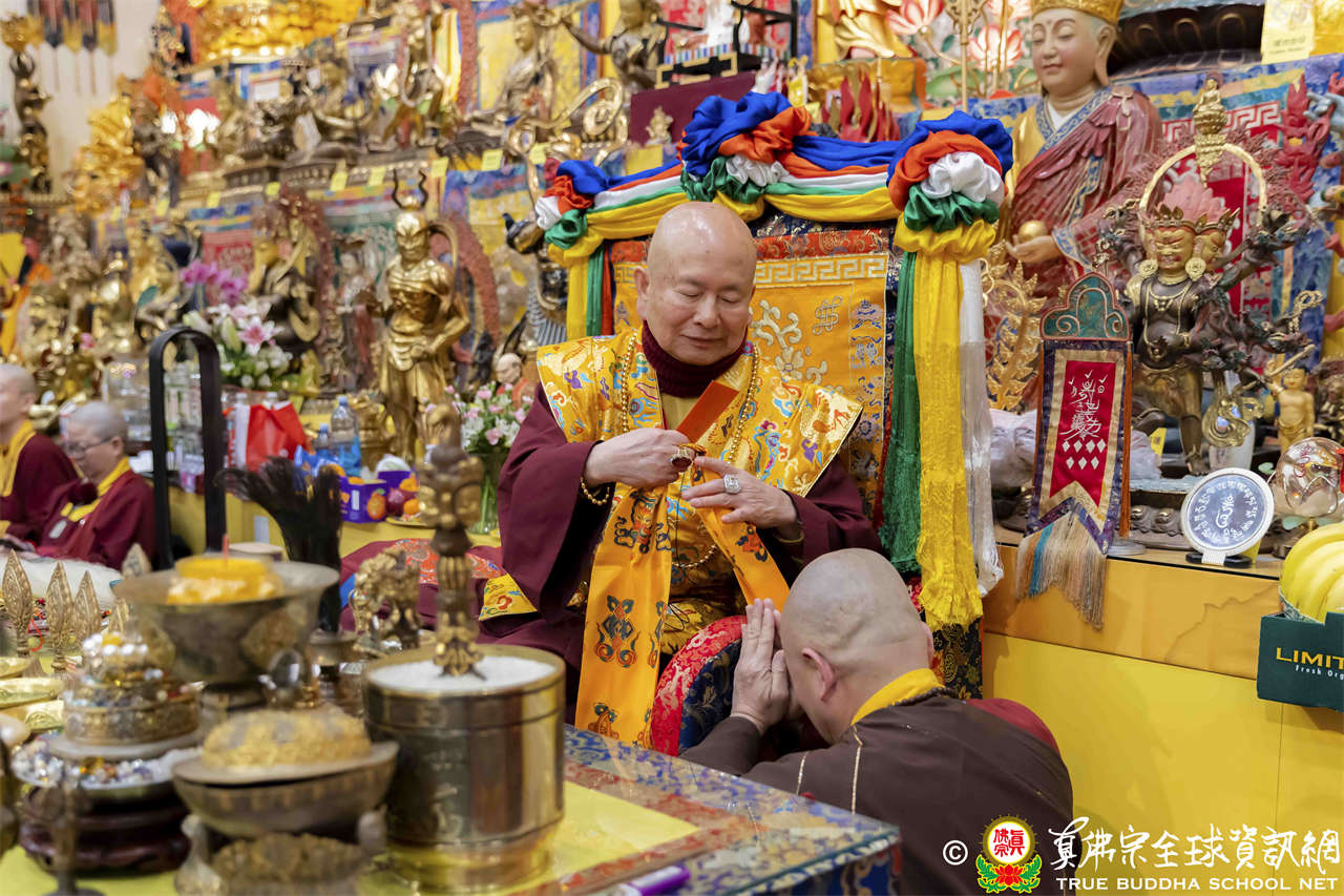在寶貴的法語開示之後,聖尊蓮生活佛以拂塵加持與會大眾。步出密壇大殿,沁涼的微風迎面襲來,今夜在大雄寶殿裡聖尊宣講維摩詰經,與弟子們言笑晏晏,與會者都如沐春風,心頭暖暖的,為今日譜寫了美好的法筵篇章。