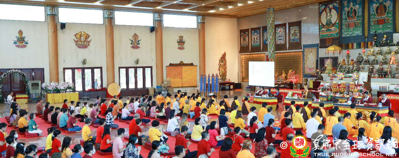 同日2月18日下午兩點,是印尼雷藏寺的新春祈福法會。由青年班的迎師組揭開法會序幕,恭迎釋蓮飛上師入道場,主壇佛頂尊勝佛母護摩法會,暨安太歲儀式。釋蓮飛上師到了壇城前,上香後即加持太歲殿及所有光明燈,平安油燈。此次佛頂尊勝佛母法會前一個多月,由釋蓮轟教授師發起眾同門合作持誦尊勝陀羅尼咒十萬遍,功德迴向印尼雷藏寺遠離地水火風等天災。同門都非常努力精進持咒迴向,不到一個月就超過了十萬遍。法會非常殊勝圓滿,上師開示時,特別由蓮轟教授師頒發獎品給三位持咒最多的同門,上師也稱讚蓮轟教授師的發心及努力,印尼雷藏寺近些年常遭水患淹水,尊勝陀羅尼咒的威力果然使印尼雷藏寺平平安安,沒再遭水淹。